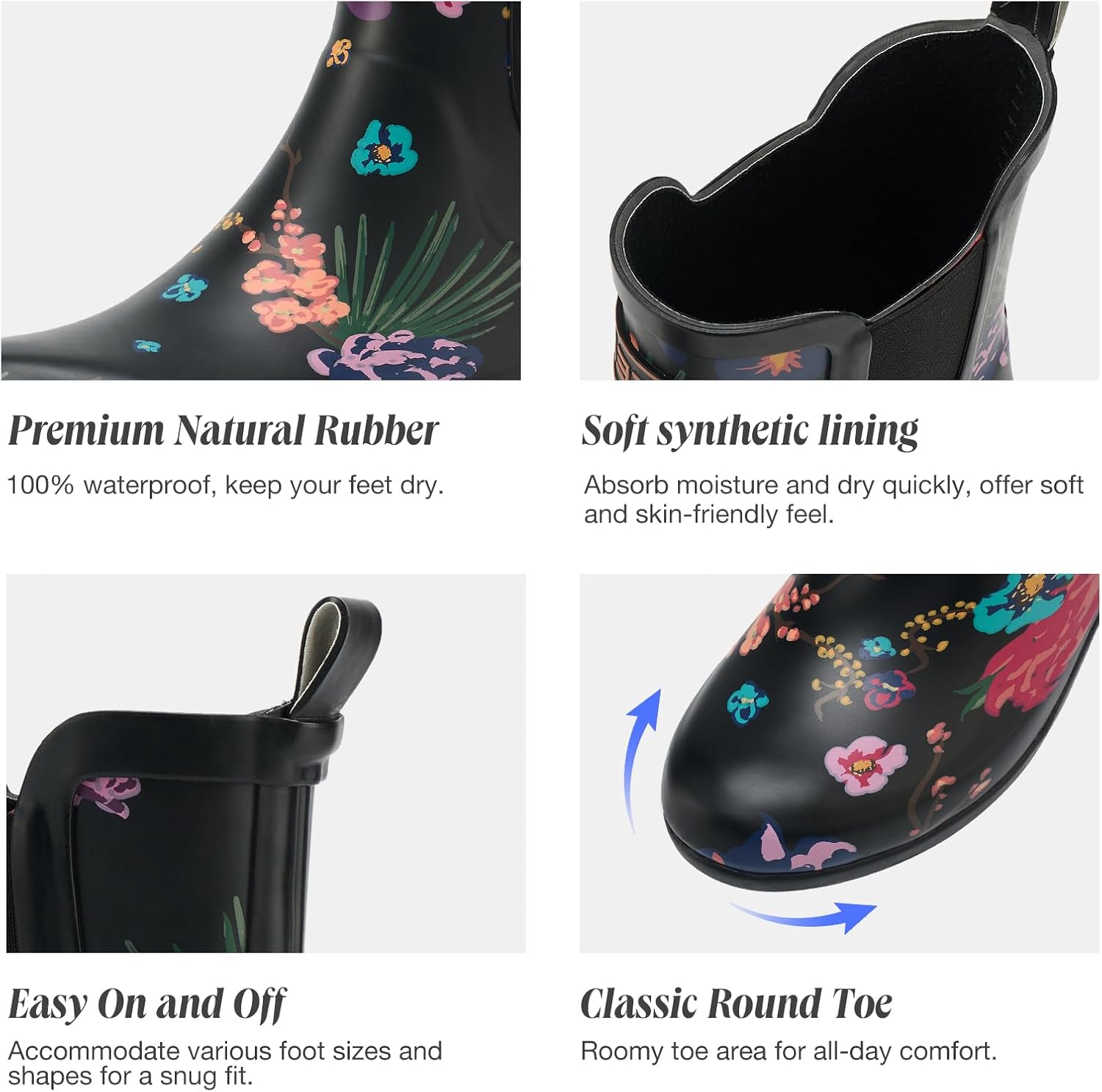 HISEA Short Rain Boots for Women Fashion Waterproof Chelsea Boots Rubber Ankle Garden Shoes Anti-Slipping Rainboots for Ladies with Comfort Insole Lightweight Outdoor Work Booties