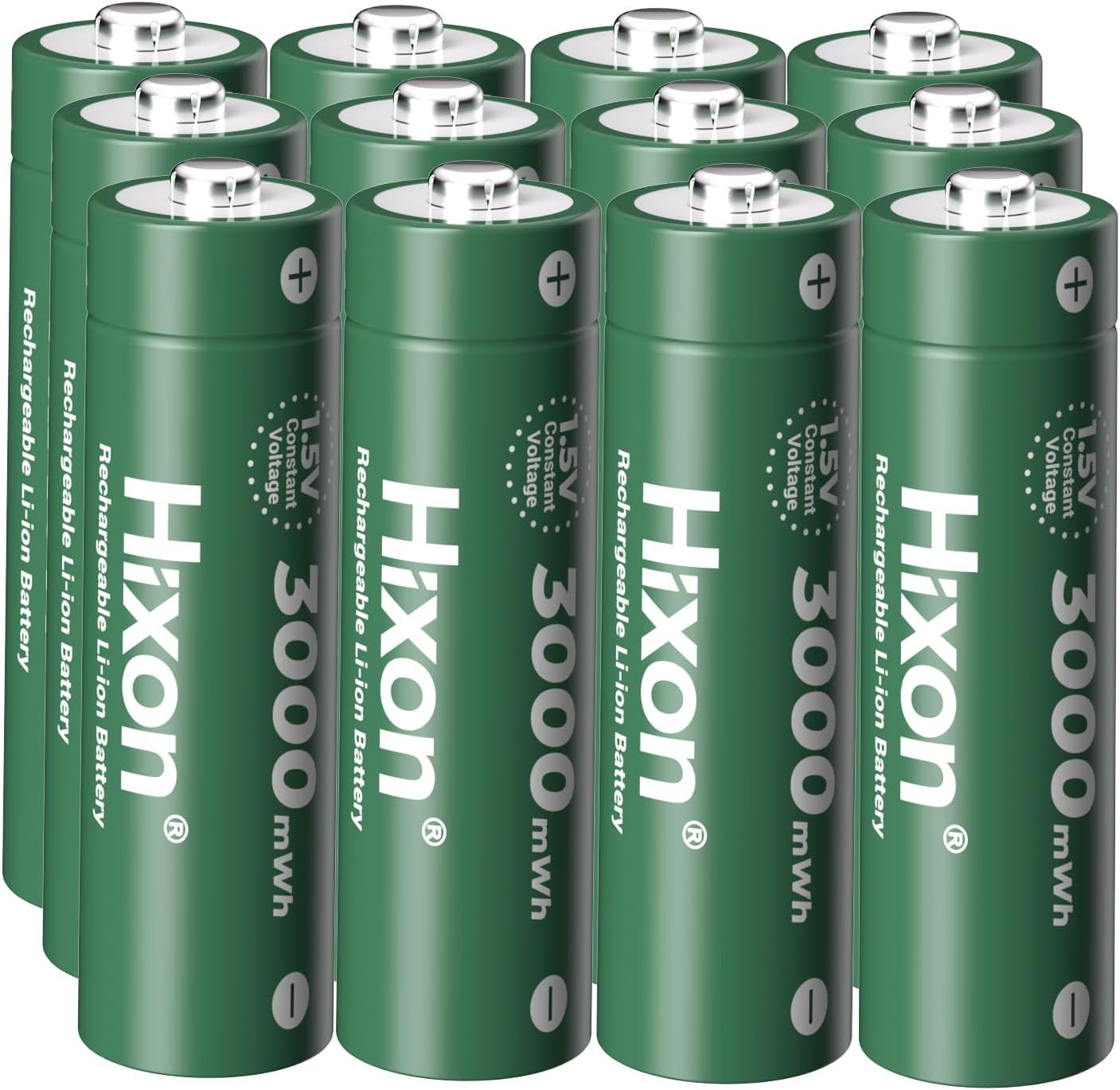 | BuiltIn Media | 8 Count Hixon 3000mWh 1.5volt rechargeable lithium AA battery, Battery storage case, Hixon Q040 model 8-slot li-ion aa/aaa battery charger, USB - Type C charging cable |