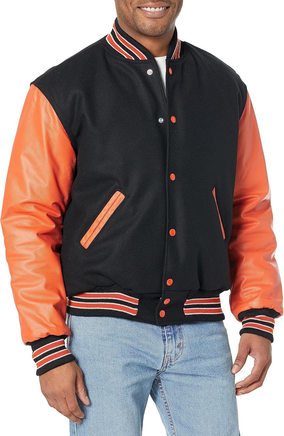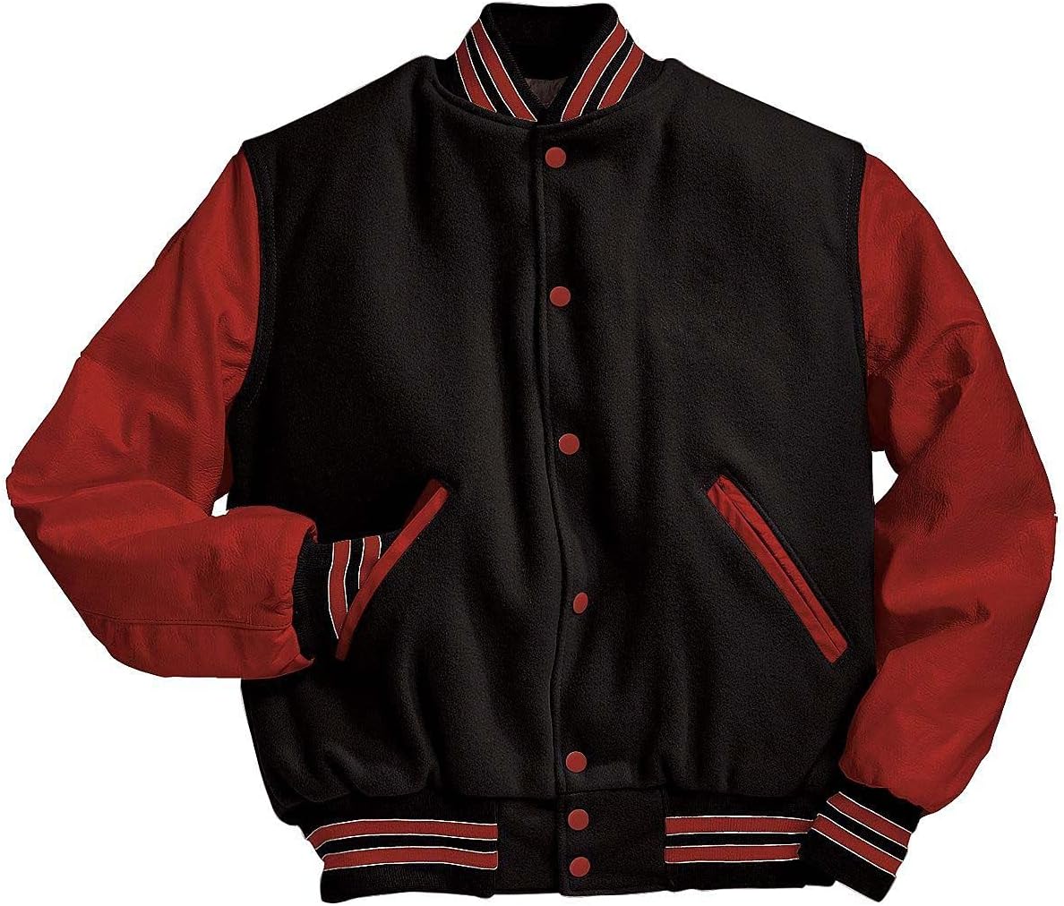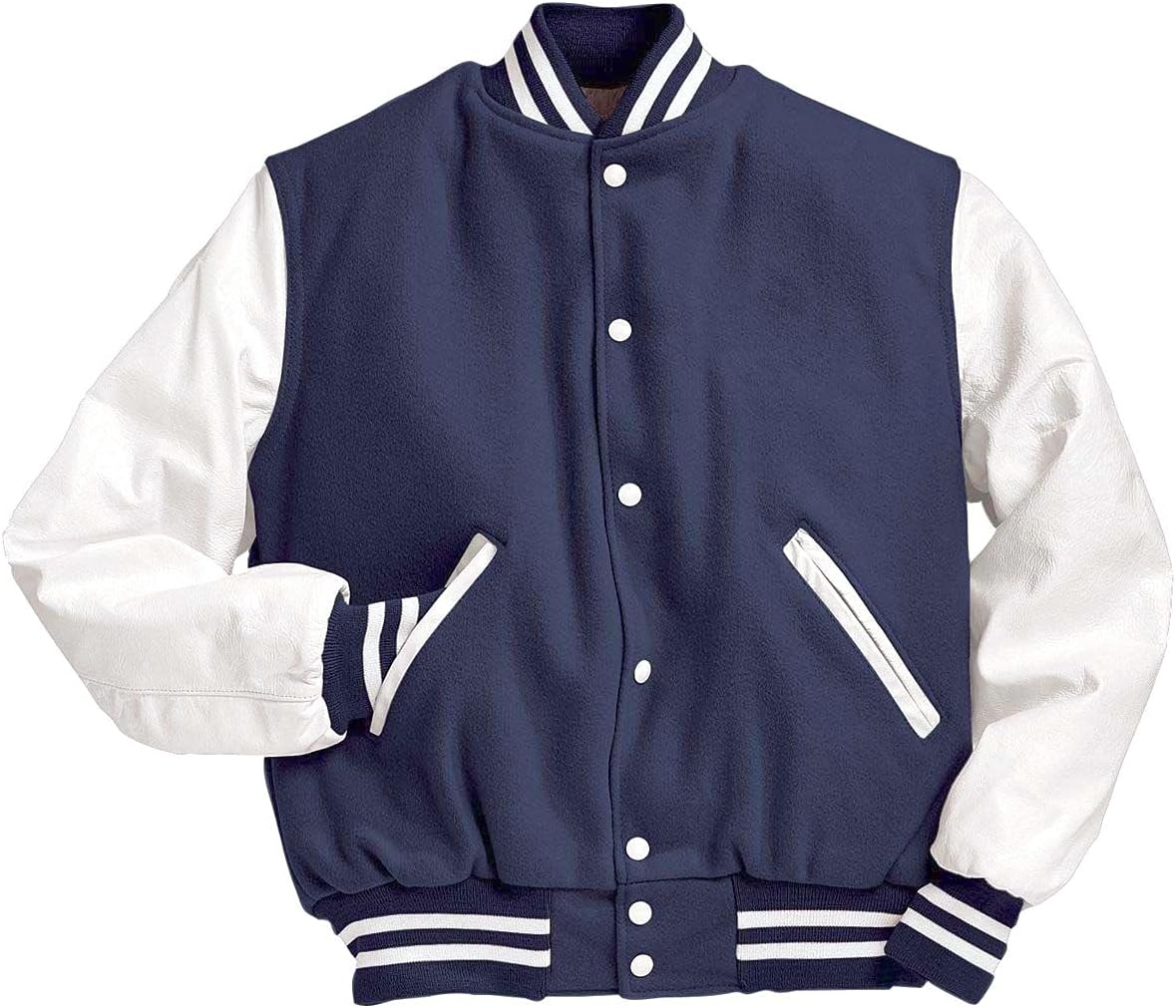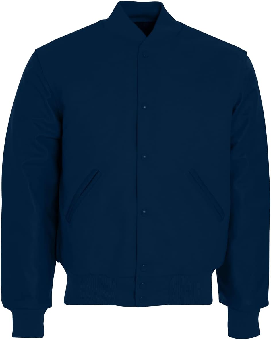 Show your school spirit in the Varsity Jacket by Holloway. This letterman jacket comes in a variety of color options, perfect for showing your team colors. From the full-snap front buttons to the high quality rib trim on the collar, cuffs and fitted hem -- everything is made of premium material. With leather sleeves, easy-entry front pockets and 24 oz. melton wool, this jacket embodies the Holloway motto, "Performance That Lasts." Personalize it to make it truly your own.