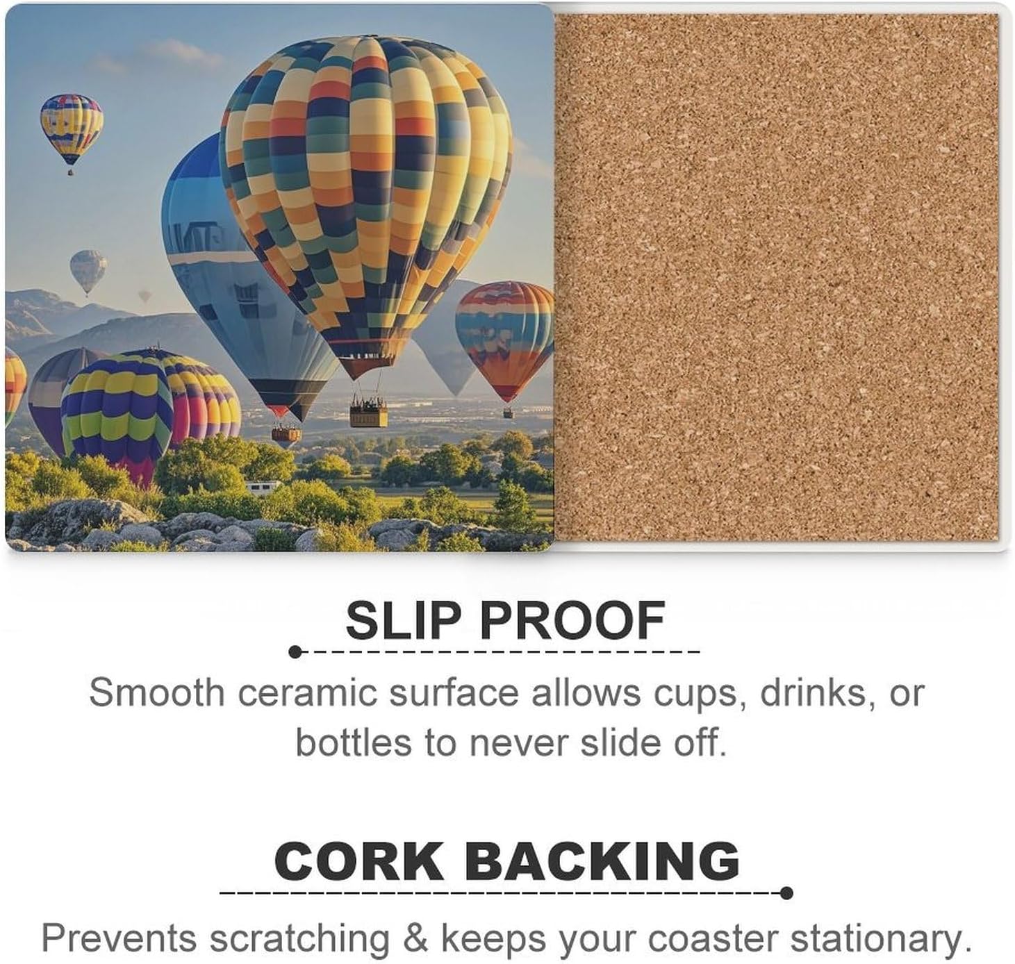 Introducing our square ceramic drink coaster — a blend of thoughtful design and practicality tailored for anyone who values both style and function. The ceramic surface acts as a reliable heat insulation cup mat, guarding your favorite coffee table, dining counter, or office desk against hot coffee, boiling tea, or cold beverage rings. Paired with a cork backing, this anti-slip drink cup mat ensures your mugs and glasses stay securely in place, eliminating the stress of accidental knocks or spills.We understand that one size doesn't fit all, which is why our ceramic coasters come in flexible set options of 4 or 6 pieces, each measuring a perfect 3.7" x 3.7". This versatile size accommodates everything from dainty teacups to bulky coffee mugs, making it a go-to choice for everyday use. As an easy to wipe drink cup mat, cleanup is a breeze — a quick swipe with a damp cloth is all it takes to remove spills or dust, so you can spend less time tidying and more time enjoying your space.These personality mug mats aren't just for personal use — they're a stylish addition to commercial spaces too. Place them in a cozy cafe to enhance customer experiences, or set them out in a restaurant to add a polished touch to dining tables. Their sleek, understated design pairs seamlessly with any decor, from modern minimalism to warm, rustic styles. As waterproof coasters, they handle cold drinks with condensation just as well as hot beverages, making them a year-round essential.