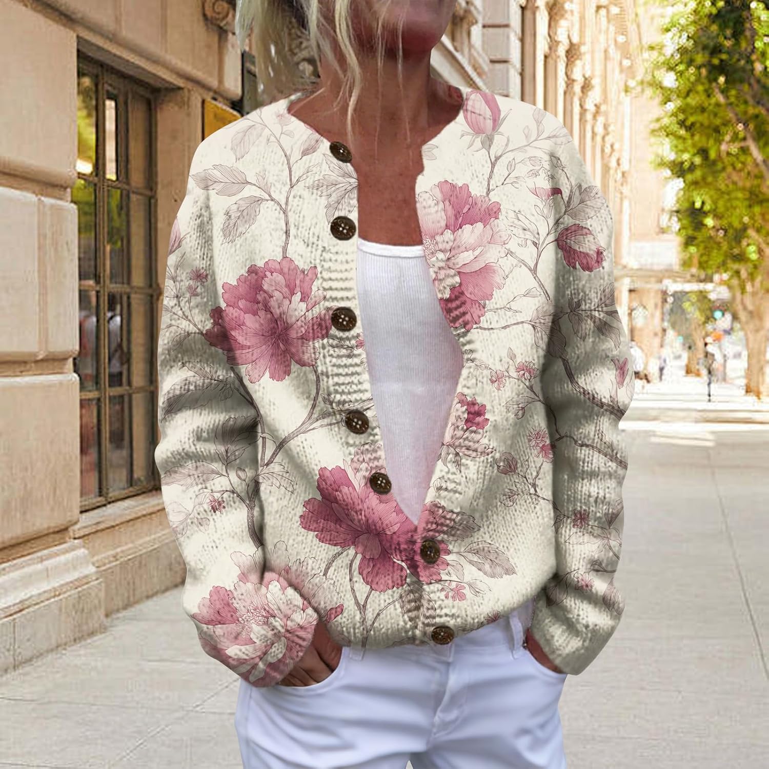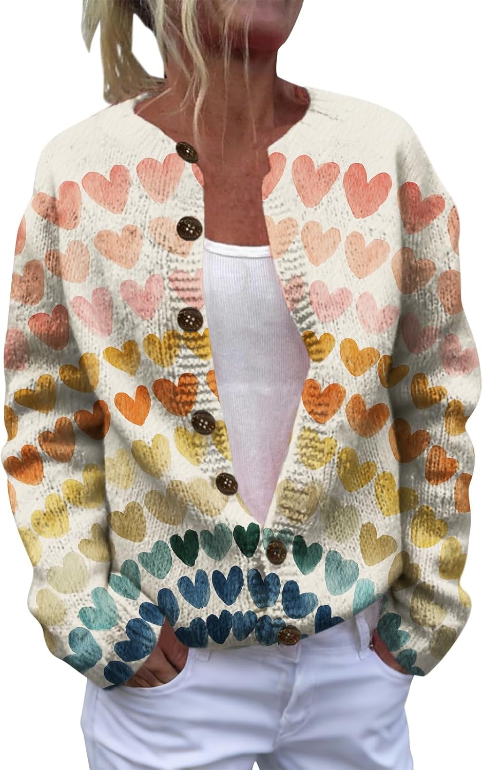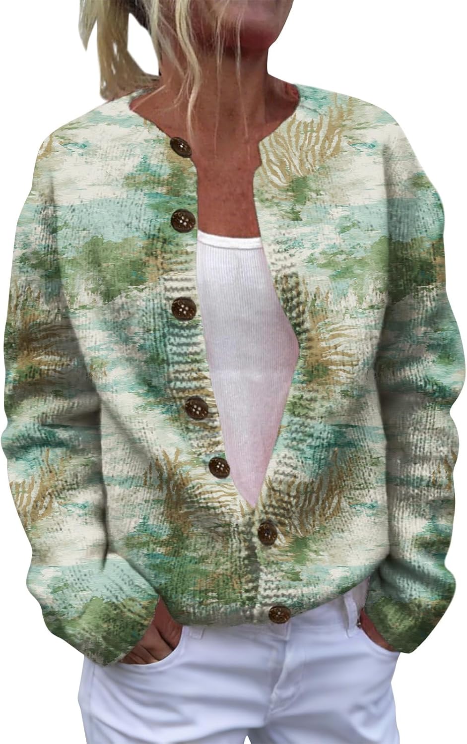 HOTYD Women's Boho Ethnic Floral Cardigans Sweaters Button Oversized Long Sleeve Open Front Sweater Plus Size Cozy Coats
