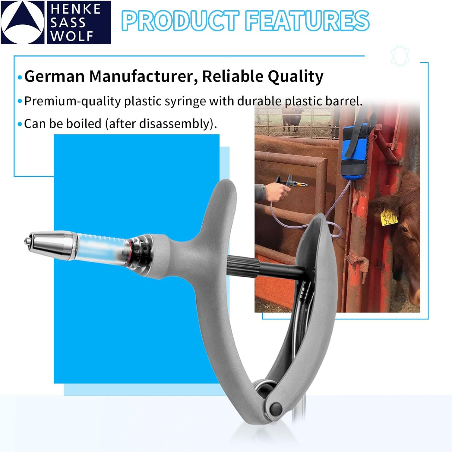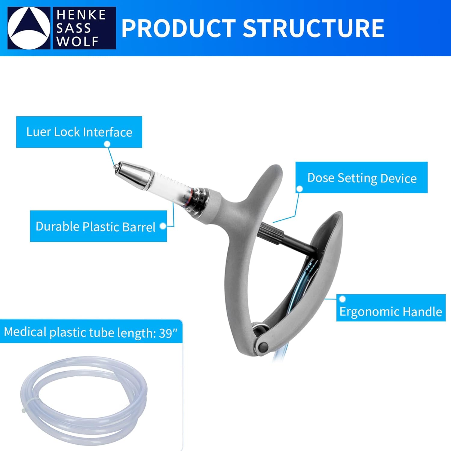 HSW ECO-MATIC 5ML Auto Self-Refilling Livestock Syringe for Injections, Tubing Connection Veterinary Syringes with Dose Adjustable 0.5 ml – 5.0 ml.