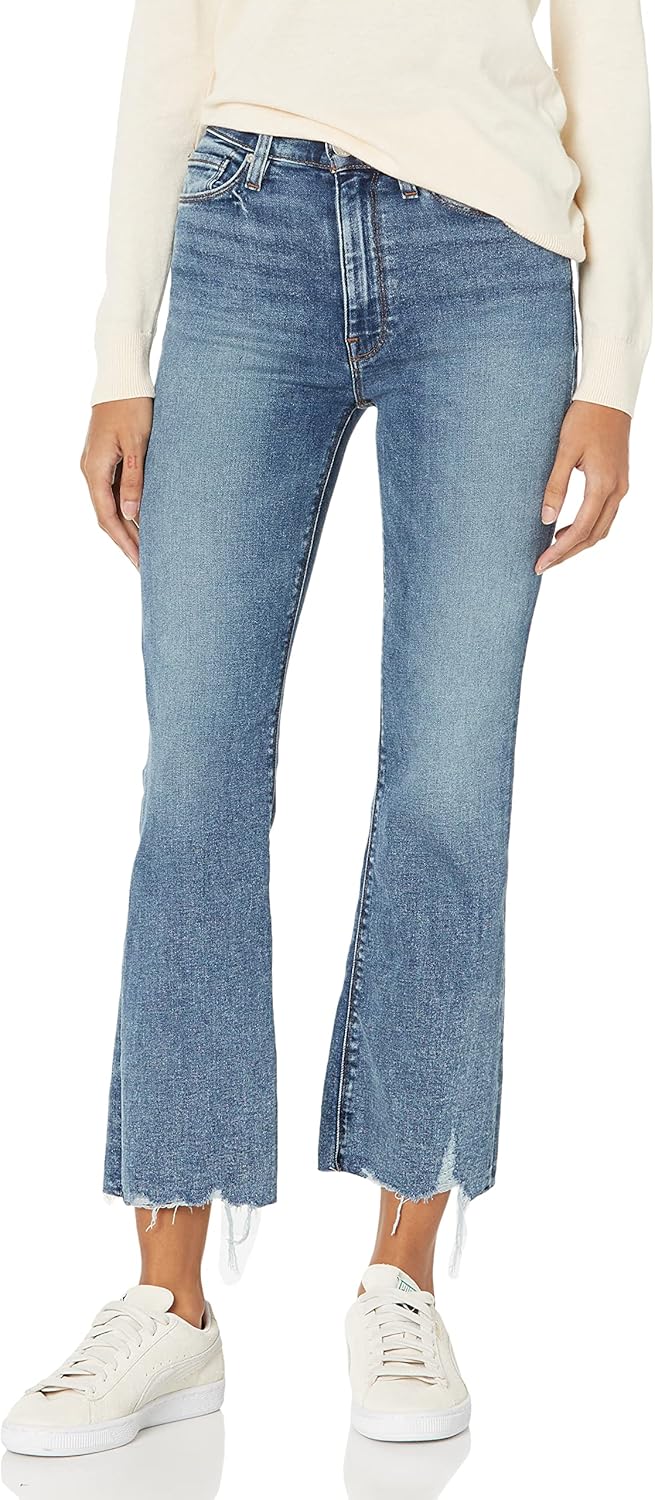 Timeless with a touch of edgy, urban flair, our stylish cropped bootcut high-waisted jeans for women are designed for great looks and comfort, whether you wear them for a casual day at work or a night out with friends. They feature contemporary good looks and can be dressed up with a blouse or dressed down with a T-shirt to suit almost any occasion.These crop jeans have a close, contoured fit and feature a zipper fly, button closure, and belt-loop waistband. The 5-pocket construction adds function and style, and the high-rise waist measures 10 1/4" and pairs with the fitted cut and 19-inch cropped, flared leg opening for a modern, flattering profile.These women’s cropped pants offer an attractive design with unique detailing, including vintage-feel fading, ripped knees, raw hems, distressed hems, and a variety of washes. Made from a high-quality cotton-denim blend for optimum stretch and comfort, these jeans are machine washable on a gentle cycle.Hudson Jeans offers style that’s irreverent, effortless, and just plain cool. We provide quality clothes that make you look and feel your best. We’re more than a denim brand. Denim is our canvas.