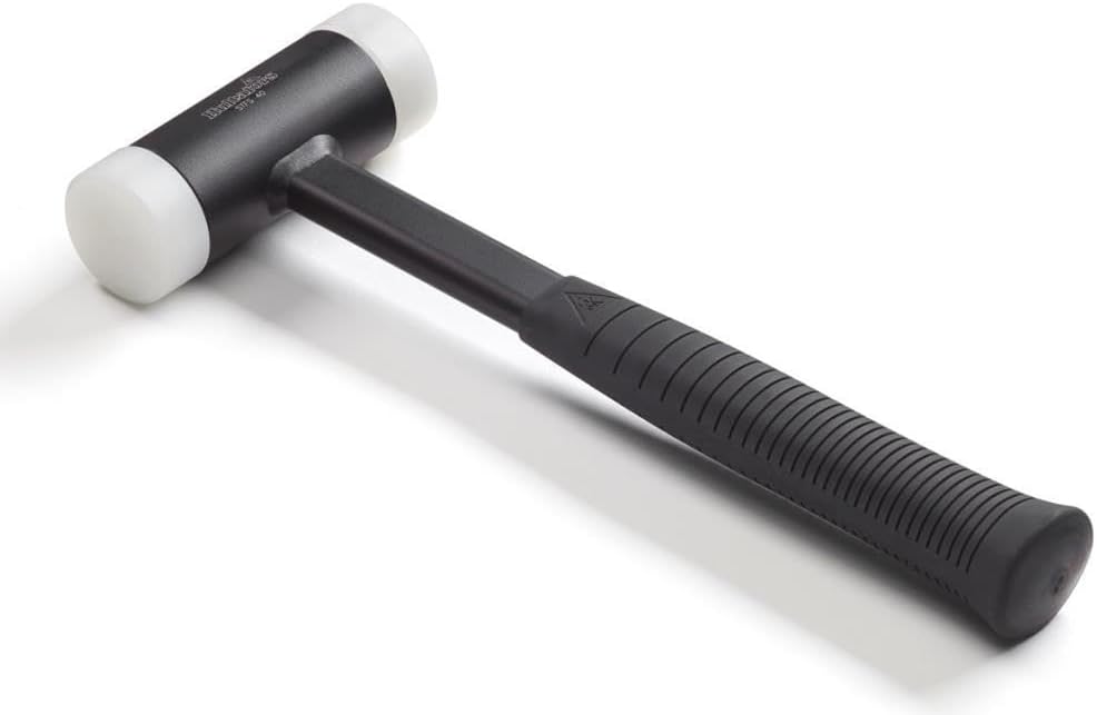 Hammer with steel striking head filled with Damping steel balls. The head has replaceable nylon strikers (hardness 70 Shore) that are gentle on work pieces. Steel shaft with rubber handle. The head is filled with steel balls that Dampen vibrations and reduce recoil. Replaceable nylon strikers (hardness 70 Shore) that are gentle on work pieces. Replaceable strikers available as spares.