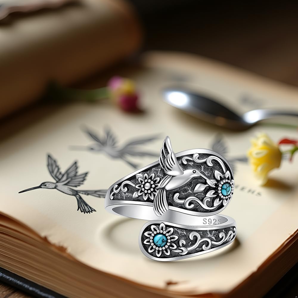 Your Exclusive Tag hummingbird ring,hummingbird rings for women,hummingbird ring for women,hummingbird adjustable ring,hummingbird spoon ring,adjustable hummingbird ring,925 sterling silver hummingbird rings,silver spoon hummingbird rings,hummingbird spoon rings for women,adjustable hummingbird rings for women,vintage hummingbird spoon ring,spoon ring with hummingbird and flowers Product Details Material: sterling silver,turquoise Size: 7 Package Contents 1X Hummingbird Spoon Ring 1X Exquisite Gift Box Beyond Their Aesthetic Appeal Each wear of this adjustable hummingbird ring tells a story of blooming flowers and timeless silver flight Perfect Gift Ideal for any occasion, from casual outings to formal gatherings, these versatile hummingbird spoon ring make a thoughtful and stylish gift Care Tips -Store in a dry, airtight container to prevent tarnishing -Use a silver polishing cloth for occasional cleaning -Avoid direct sunlight to prevent fading -Keep away from extreme temperatures to maintain shape -Handle with care to prevent bending or scratching