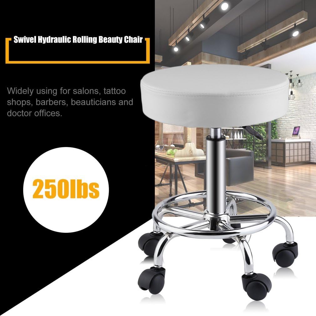 🔍THE REASONS WHY YOU BUY IT?🔎 ✔ It is with wheel casters allow for easy movement. ✔ Super comfortable to sit on it and design for it is attractive. ✔ It is quite sturdy,stable durable. ✔ The height can be adjustable and it can swivel for 360 degrees. ✔ and it is with pneumatic system more convenient for you. ✔ Ergonomics and stylish design,super modern. DESCRIPTIONS It can provide you with an enjoyable massage experience especially if you perform bodywork techniques in a seated position. Widely using for salons, tattoo shops, barbers, beauticians and doctor offices. An adjustable rolling stool that is lightweight and easy to store. SPECIFICATIONS: Color:black/white/red/grey Seat Material:PU Leather Stand Material:Chromed Steel Seat Height:Adjustable, 52.5-65cm Seat Diameter:35cm Package Size:39*40*18cm Capacity:250lbs PACKAGE INCLUDED: 1x Professional Salon Stool NOTES 1.Please allow 2-3mm measure error. 2.The color of the actual items may slightly vary from the above images due to different computer screen, thanks for your understanding. 🌹 --------------------------OUR SERVICE------------------------------- 🌹 As a honest Amazon seller we offer convenient after-sales service: ▪ If the item broken, damaged or wrong item received, customer need to send picture to us will be ok, and then we will refund or resend in 24 hours; ▪ If customer do not like it, we can offer return, or give several suggestions we think is better or more convenience; ▪ If for other reasons, we encourage our customer contact us, we will response in one business day and do our best to service you.