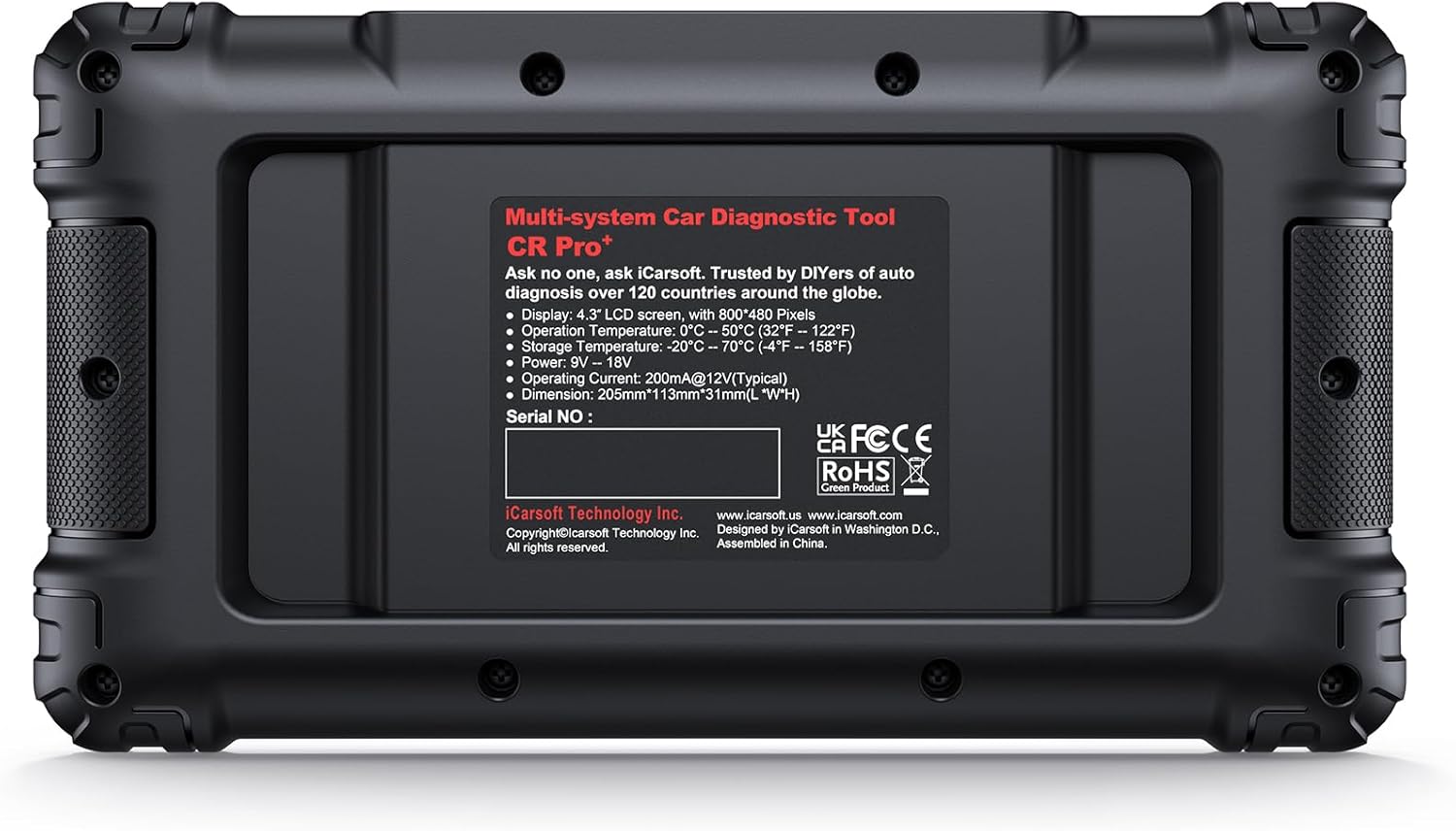 | Included Components | OBD2 cable, USB update cable, iCarsoft CR Pro+ |