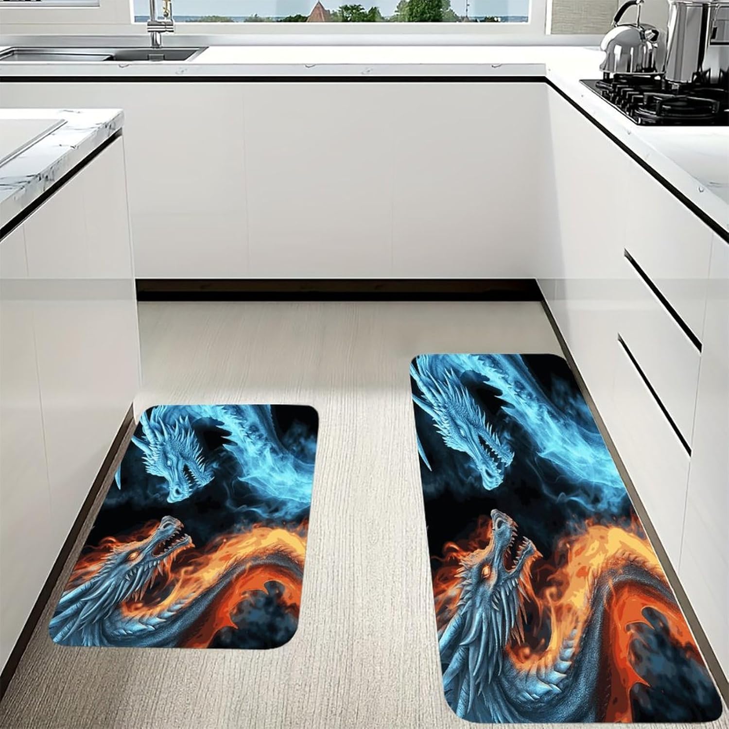 Elevate your standing experience with our 2-piece Cushioned Anti Fatigue Mat set, designed to blend comfort, functionality, and style across every room in your home. As a Comfort Desk Mat, it also eases the pressure of long workdays, making it a must-have for remote workers and home chefs alike.The Cushioned Anti-Fatigue Non-Skid Rug core offers targeted support that reduces strain on your feet, knees, and lower back—perfect for anyone who spends hours standing. Unlike thin, flimsy alternatives, this Ice And Fire Dragons Kitchen Rug uses pill-resistant flannel that stays soft, even with daily use. It works equally well as a Non Slip Comfort Standing Mat in the laundry room, turning tedious folding and sorting tasks into a more comfortable routine.With its warm, inviting aesthetic, this Farmhouse Anti Fatigue Mat fits seamlessly into rustic, farmhouse, or modern home decor. Use the Cushioned Kitchen Rug as a soft landing spot by your bathroom shower, or bring it outdoors to create a comfortable standing area for gardening or grilling. Every detail is crafted to fit your busy lifestyle, from the easy-clean fabric to the versatile sizing that adapts to any space.