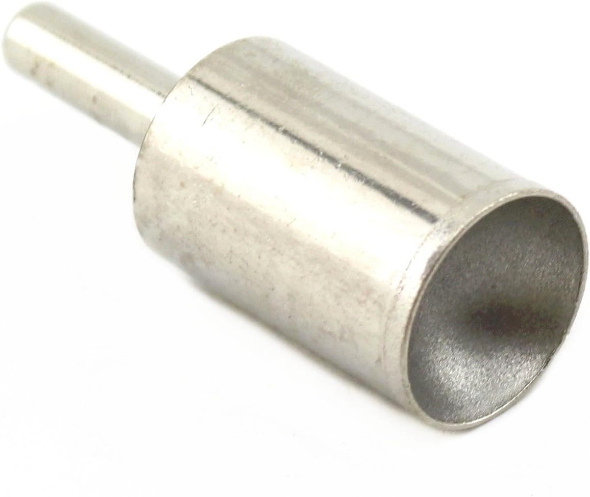 Diamond Mounted Point SPHERICAL CONCAVE Head Grinding Bit 30mm Grit 400 Jade Carving Tools Diamond grinding bit Spherical Concave head, Jade carving tools Head Shape: Spherical Concave Head Grit: 400 Fine Quantity: Only 1 Piece Outer Diameter:30mm (1-3/16") Internal Diameter:28mm Shank Diameter:6-8mm Total Length:51mm When you need to grind what diameter ball, please choose the same outer diameter of spherical concave head grinding bit. Such as: If you choose 20mm outer diameter of spherical concave head grinding bit, then you can grinding a 20mm outer diameter ball. Because the concave arc is not a semicircle (shallower than a semicircle)When you need to grind what diameter ball, please choose the same outer diameter of spherical concave head grinding bit. Such as: If you choose 20mm outer diameter of spherical concave head grinding bit, then you can grinding a 20mm outer diameter ball. Because the concave arc is not a semicircle (shallower than a semicircle) Product use: Apply to jade carving, stone carving, bone carving, glass carving etc. Especially suitable for forming and grinding spherical bead, etc. Used for sculpturing, precision grinding in precious stone, ceramic, glass, many the abrasive materials The speed of 2000-5000 r/min. The Diamond grinding head can be installed on the Bench drilling machine, hand electric drill (not included here). Never use drills while machine is in hammer action. Use with water as a lubricant Note: carving must use cold water to cool the workpiece and the grinding head polishing, moment also can’t do without water We Can Provide other Size & Grit of the Diamond Mounted Point SPHERICAL CONCAVE Head.