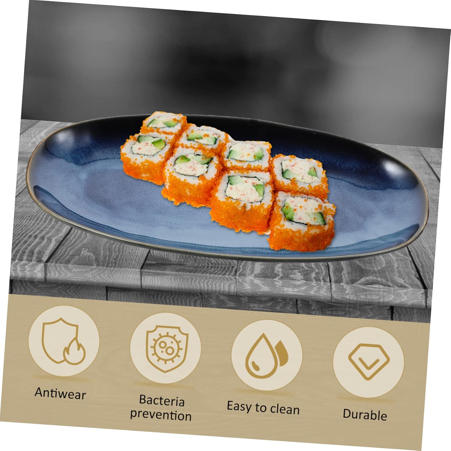Package Include 1 x Ceramic Sushi Plate Characteristics - Size: 34.7x16.8x3.5cm trays for eating. - Material: Ceramic ceramic serving tray. - Color:Blue food serving tray. -Product Info:Sushi plate -Note:There may be color differences between different batches salad plate. - An your friends, families ceramics sushi tray - The plates features with sweet color, design, multi-function and ceramic snack plate - A versatile gadget to serve for snacks, nuts, dried fruits, appetizers, sauces serving tea tray. porcelain tray - Made from premium ceramic, detail and design ceramic serving platter. - Perfect for family gatherings, parties, weddings, bars and restaurants, etc decorative serving platterGoods Informationdecorative serving platter More eye-catching and attractive than the routinist storage plates in the current market.ceramics sushi tray You can use it for any occasions such as everyday use, family gatherings, parties, weddings, bars and restaurants.candy ceramic platter Have you aesthetic fatigue to your home storage tray? Want to try some different plate to hold your food or fruit? Try our this ceramic dinner plate, very chic and stylish