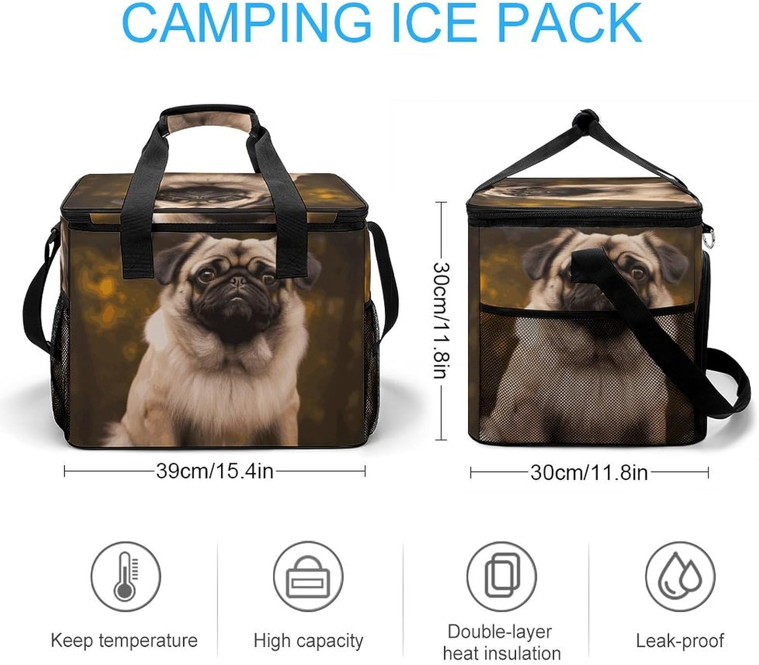 Take Your Meals Anywhere with Pug Dog Grocery BagsFood Container Carrier Oxford Fabric Picnic Bag Heat Retaining Food Bag Camping Cooler BBQ Accessories Cute Picnic Bag with Pockets Insulated Food Bag for Work Insulated Lunch Tote Bag Camping BagTemperature Control That WorksThe upgraded aluminum foil lining creates an effective thermal barrier. Your drinks stay refreshingly cold, and your hot dishes maintain their warmth for hours. No more lukewarm meals during outdoor outings.Thoughtful Storage DesignTwo side mesh pockets - Perfect for water bottles or umbrellasFront zippered pocket - Keeps keys, phone, or condiments organizedInternal mesh pocket - Stores utensils, napkins, and small essentialsMain compartment - Spacious enough for food containers and snacksBuilt for Daily AdventuresConstructed from high-density oxford fabric with reinforced stitching at stress points. The double zippers are sturdy and smooth-operating. Reinforced handles let you carry heavy loads with confidence.Carry Your WayHandles for quick grabbingStands upright for easy packing and accessPerfect For:Picnics in the parkBeach days and pool partiesCamping and hiking tripsOutdoor concerts and festivalsDaily work lunchesGym and fitness classesRoad trips and travelGrocery shoppingSpecifications:Dimensions: 15.4 x 11.8 x 11.8 inchesMaterial: High-density Oxford fabricLining: Aluminum foil (insulated)Closure: Sturdy double zippersPockets: 2 side mesh, 1 front zipper, 1 internal meshCare: Hand wash or machine wash, do not bleachNote: Food containers and utensils shown in images are not included.