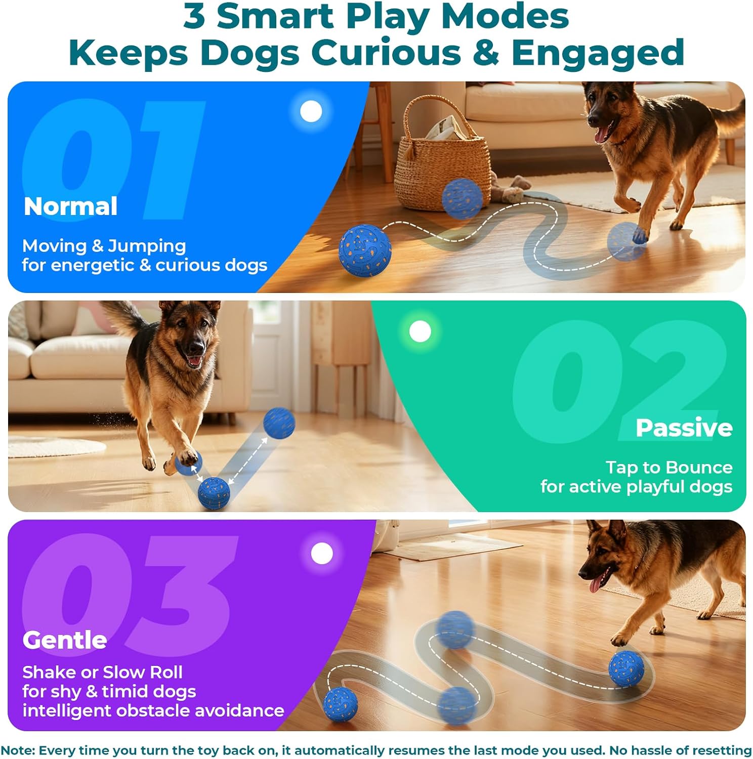 | Additional Features | 3 Activity Modes, Auto Movement, High Bounce, Rechargeable Battery, Smart Motion Sensor |