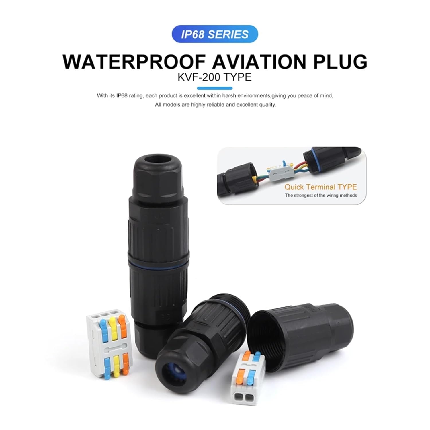 IP68 2/3Pin Waterproof Cable Connector I Shape KVF-200 Quick Terminal Connection Seal Electrical Adapter Outdoor Junction Box(KVF-200-3Pin)
