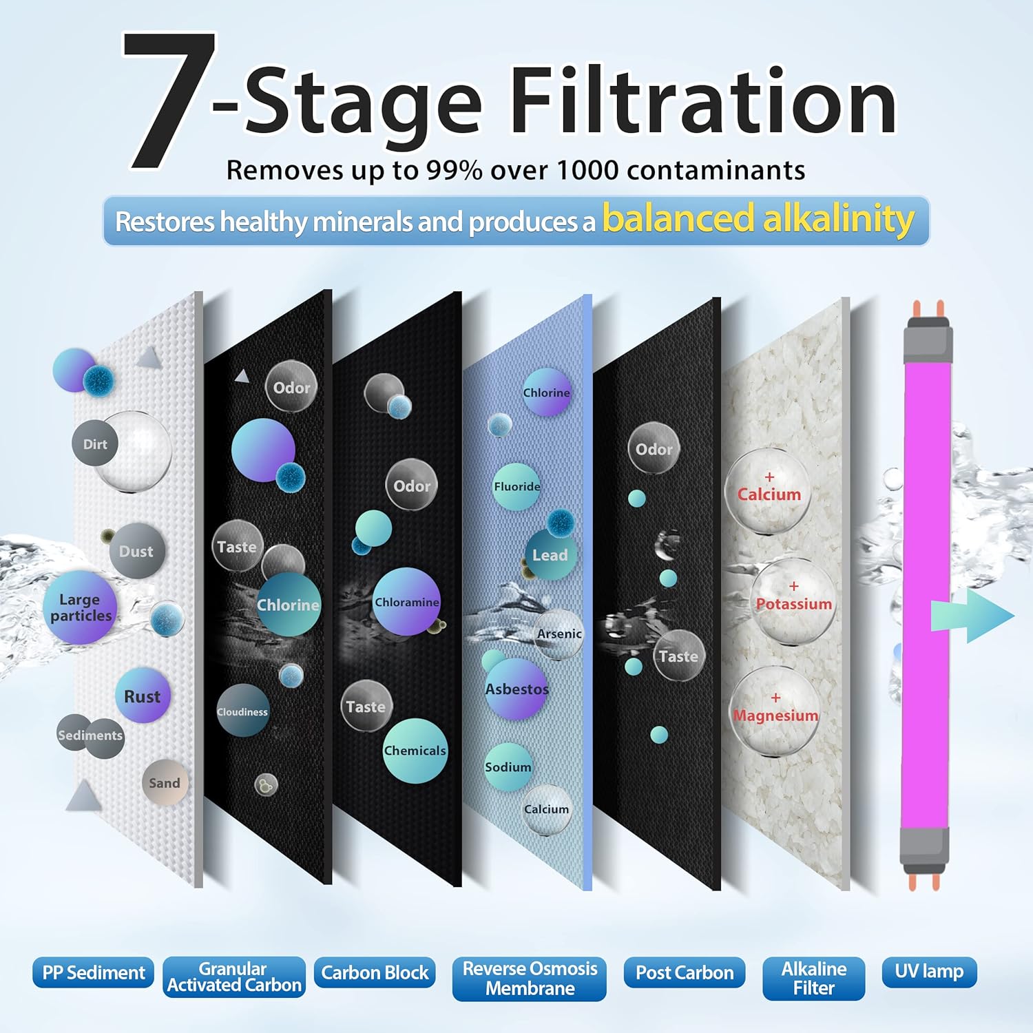 iSpring RCC1UP-AK 100GPD Under Sink 7-Stage Reverse Osmosis RO Drinking Filtration System and Water Filter for Sink with Alkaline Remineralization, Booster Pump and UV Ultraviolet Filter, WhiteThe RCC1UP-AK is an upgrade to the standard RCC7AK-UV system, equipped with a pre-installed booster pump to bring your water pressure up to the ideal level for the reverse osmosis process. The booster pump allows the system to function at the ideal level from production speed to drain ratio. The installation is DIY friendly for most users, with written, video, and tech support assistance if needed. Replacement filters are standard sized. and lifetime technical support from iSpring in Atlanta, GA. Incoming Water Pressure: 30 PSI - 70 PSI. Operating water temperature range: 40 – 100 F. Maximum TDS: 750 ppm.iSpring GA1-B Reverse Osmosis, Kitchen Bar Sink Lead-Free Drinking Water Faucet, Contemporary Style, High Spout, ChromeAn elegant lead-free European style water filter faucet or Reverse Osmosis system faucet from iSpring GA1 Series will add a great accent to your kitchen. It features a smooth quarter turn handle with a ceramic cartridge for a lifetime of service. A 1/2-Inch hole is all that is needed for the faucet stem (all series). A cover plate that is 2 inches in diameter is included to accommodate larger pre-drilled holes. Faucet Height: 11. 25"; Swivel Spout Reach: 6" ; Spout Height: 6. 5". The adapter included in the package is for 1/4'' tubing only. Please contact us if you need an adapter for 3/8'' tubing. GA USA. NOTE: Not to be used with RO systems that require an air gap faucet, which has three connections on the bottom of the faucet. NOT a regular hot and cold water kitchen sink or bar sink faucet. No hoses included.