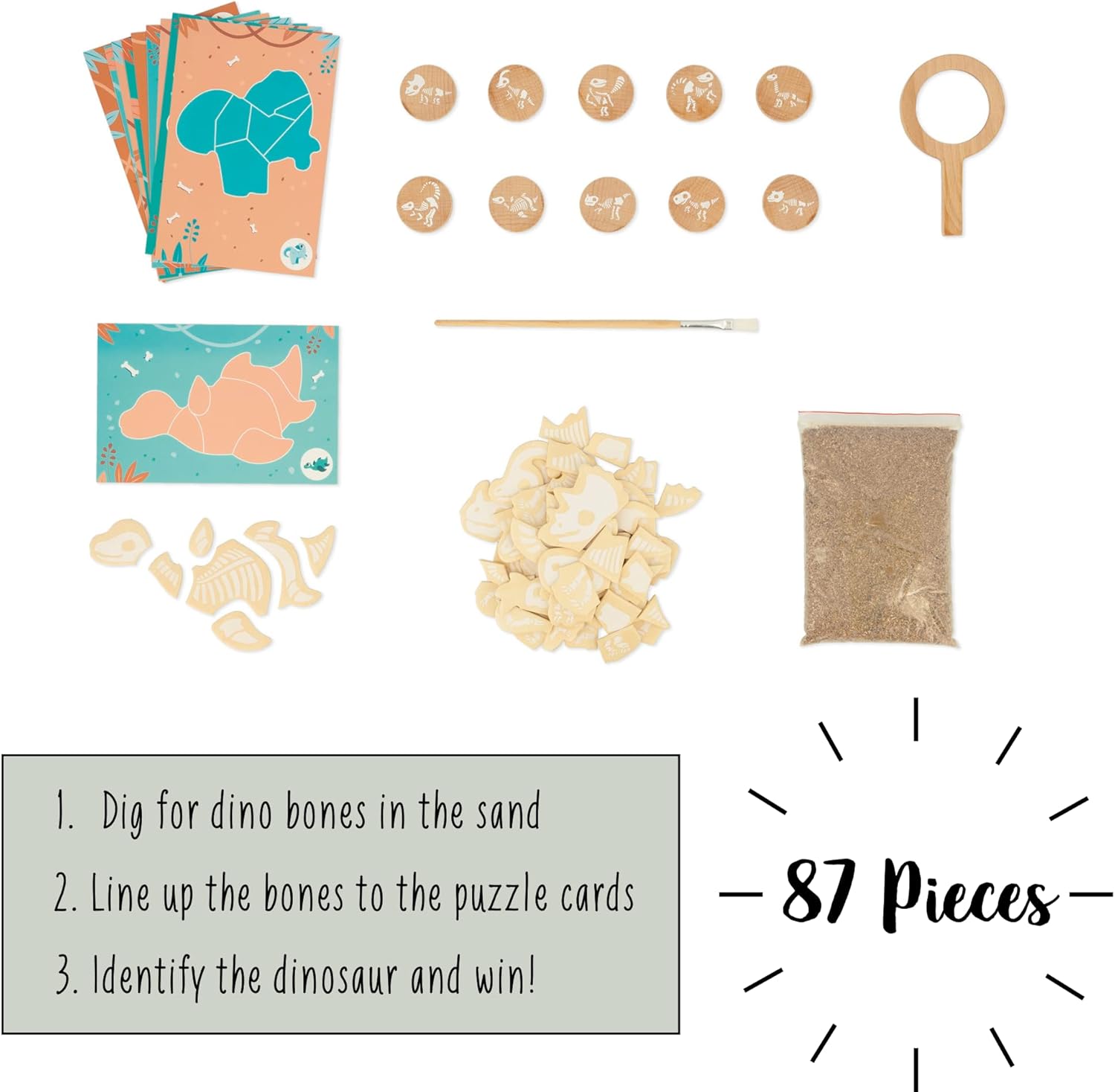 | Included Components | puzzle cards, puzzle pieces, excavation tools, sand, magnifying glass |