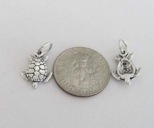 This Sterling Silver 925 tiny charm is a Sea turtle 11 x 9.5mm (7/16 x 3/8) without bail. There is a lot of detail for such a tiny charm. Approx. weight in grams is 1.1. This item is stamped "925". This charm is one sided. The coin shown in the picture is for is for size comparison. The open "jump ring" attached to the charm is 19 gauge 4.5mm I.D. sterling Silver 925. _________________________ To combine shipping: Enter items in "ADD TO CART", then proceed to checkout.This item is shipped in a gift box! *The above measurements can be used to draw a square or rectangle for a reference to the item size. Sterling Silver 925 is a metal alloy that contains 92.5% Silver 925 and 7.5% other metals to increase its strength. These trace metals help cause the sterling Silver 925 to tarnish due to various chemicals in the air. Some Sterling Silver 925 jewelry is intentionally blackened to bring out details or to give an antique look. A jewelry polishing cloth will remove the tarnish while leaving the blackened areas. For Sterling Silver 925 jewelry that is high polished, a liquid Silver 925 cleaner can also be used. Sterling Silver 925 jewelry should be stored in a plastic container/organizer or a small zip lock bag. Be sure jewelry is dry before storage. Thanks for Viewing