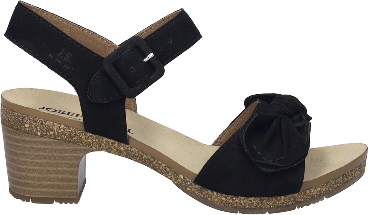 With Grace 11, JOSEF SEIBEL presents an elegant sandal in classic black, specially designed for women. This model combines high-quality nubuck leather from cowhide with an innovative sole combination of TPR, PU and cork, which is known not only for its slip resistance, but also for its lightness and durability. The use of microfibre for the footbed guarantees a comfortable fit. Particularly noteworthy is the traditional Strobel design, which ensures an optimal connection of the shaft and outer midsole and thus increases the stability of the shoe. Whether in leisure time or as part of summer fashion, this sandal with Velcro can be combined in many ways and supports an active outdoor life. JOSEF SEIBEL relies on modern wearing pleasure, perfection in fit and function as well as the use of high-quality materials, far from fast fashion. A shoe that impresses with its special features and invites you to sustainable style.