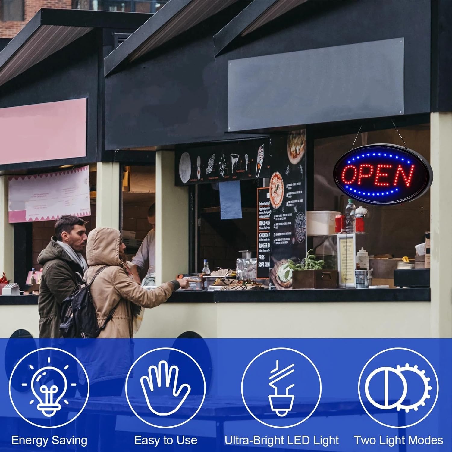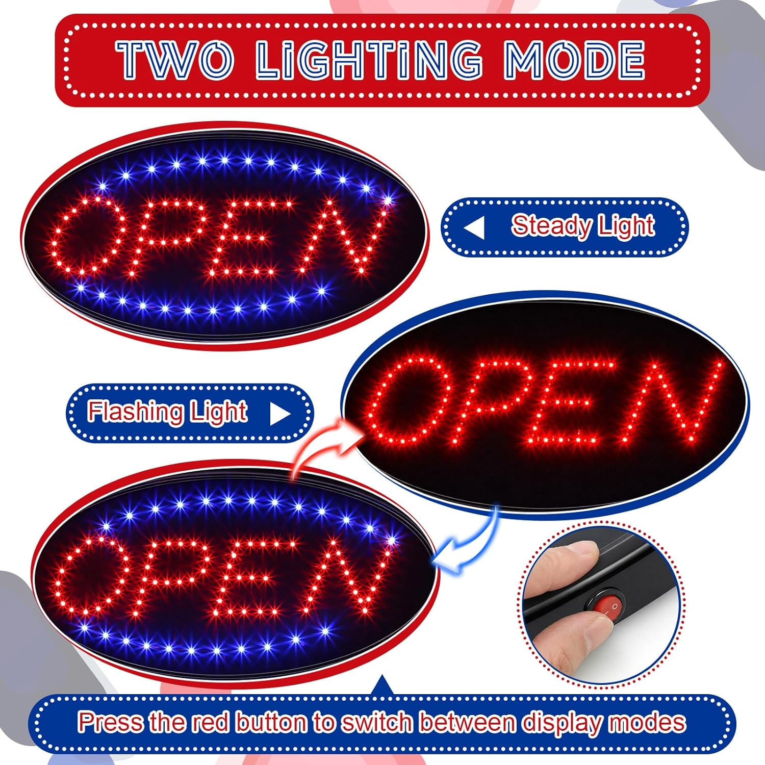 Features: Practical and warm: Opening and closing signs remind customers whether the shop is open or closes, push and pull stickers ensure everyone knows how the door opens. Practical business signs for outside are suitable for all shops and places of business. Large and attractive: LED display sign in large size can attract customers and pedestrians, push pull signs can remind guests to open the door carefully, small details can impress guests to indirectly improve passenger flow. Specifications: Material: Open LED sign: ABS frame, density board, LED lamp bead Pull and push door sticker: vinyl Color: red, blue Size: Open LED sign: about 19 x 10 inches/ 48 x 25 cm Pull and push door sticker: about 5 x 2 inches/ 13 x 4 cm Package includes: 1 x Open LED sign 2 x Pull and push door sticker Notes: Manual measurement, please allow slight errors on size. The color may exist a slight difference due to different screen displays