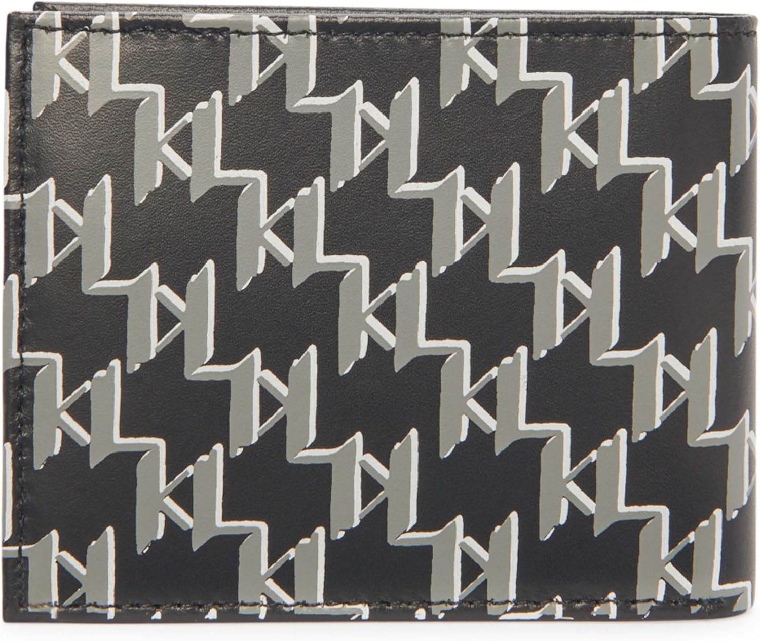 This billfold wallet by KARL LAGERFELD PARIS is made of smooth and tumbled leather that features the brand's signature gray KL logo pattern.