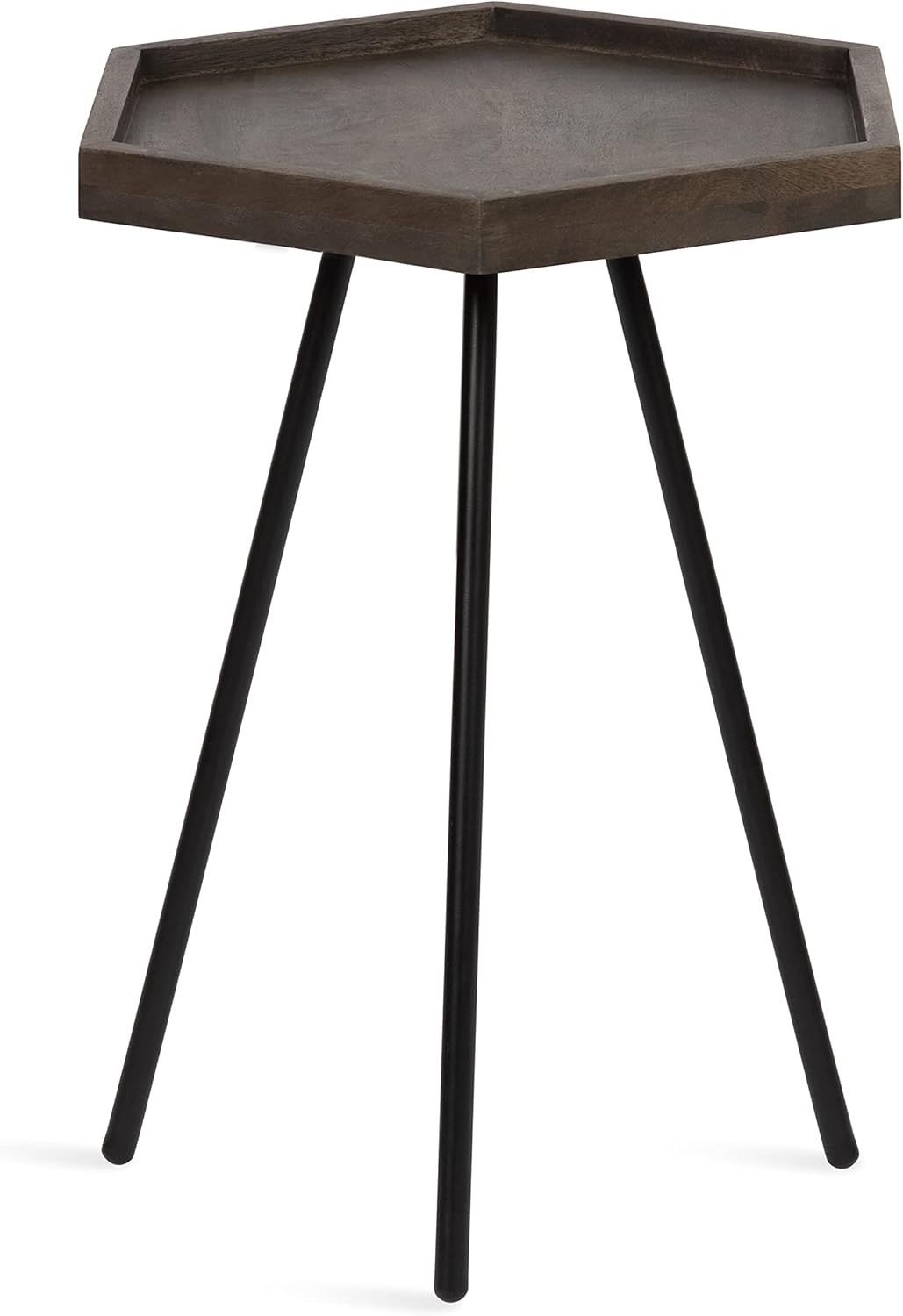 Serve drinks, display your favorite keepsakes, or have a place to store remotes, magazines, and books with this delightful modern side table from Kate and Laurel. This geometric table is 20 inches tall, making it the perfect size to showcase by your sofa, ottoman, or bed. The Kashvi side table features a hexagon 14" x 14" tabletop with a 1" edge, giving you plenty of room for storage and display. This table features a gold finish on the outer frame, while the inner basin has a white finish and a glossy epoxy enamel layer. This two-tone finish provides a transitional aesthetic capable of blending into any modern living room, bedroom, bathroom, entryway, or dining room. For an extra touch of modern flair, you can even use the Kashvi Side Table as as a modern plant stand or a catch-all for jewelry, makeup, creams, and lotions. This contemporary end table is also easy to assemble with three tripod-inspired legs that screw into the tabletop in only a matter of seconds. The tripod like design saves space while also adding some much-needed modern flair to any room.