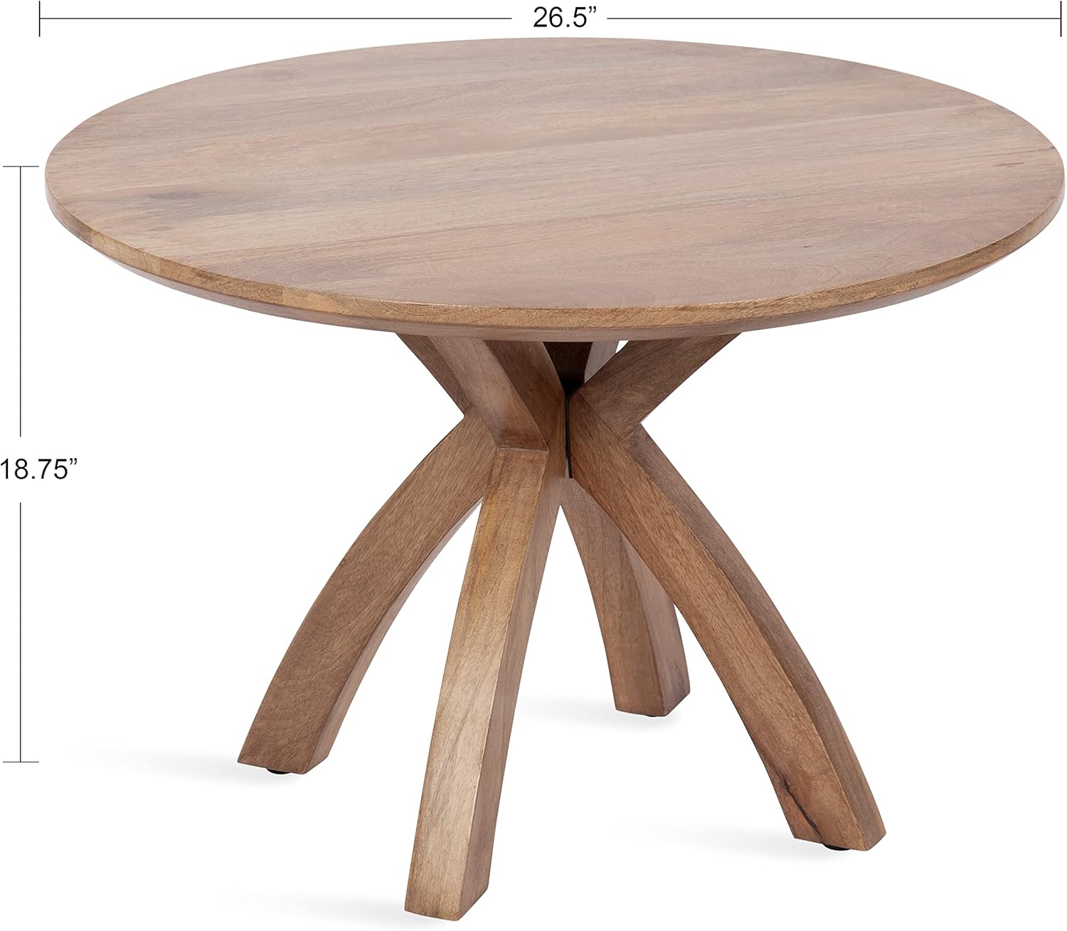 Add some warmth to your home with a coffee table that exudes midcentury modern style. The Soleyn coffee table was inspired by the tasteful forms and aesthetics of midcentury modern design, showcasing an elegant curvature and combining it with bold geometry. This beautiful table was crafted with robust mango wood by skilled artisans in India, giving each piece a distinct finish, woodgrain, and texture. That means that each piece is one-of-a-kind with unique variations. It's perfect for showcasing your midcentury style while providing a functional area for storage and display. The overall dimensions of the Soleyn coffee table are 26.5 inches wide by 26.5 inches deep by 18.5 inches tall, making it a fantastic addition to your organic modern living area. The pads on the bottom of the feet prevent the Soleyn from damaging your hard surfaces. Use the robust tabletop to showcase your prized centerpiece and coasters for your morning tea. Assembly for the Soleyn table takes only a matter of minutes with a simple 3-step process.