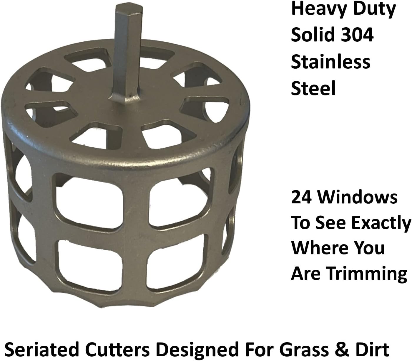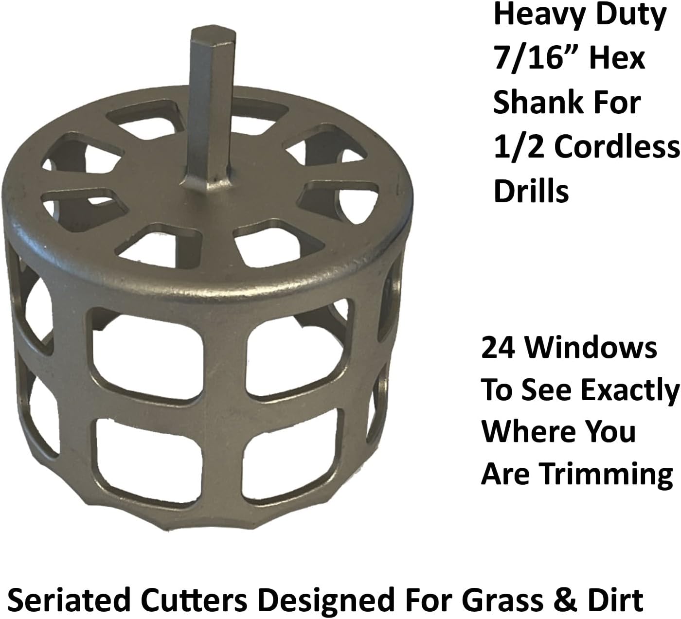 Keyfit Tools U.S.A. Helios Visi-Trim Drill Power 304 Stainless Steel Sprinkler Head Trimmer PROFESSIONL CONTRACTOR GRADE 4" Diameter Trim Rotor Heads in Seconds! for Overgrown Sprinklers Removal Adjustment Replacement & Raising ~DRILL & SPRINKLER HEAD NOT INCLUDED Saber Tooth Teeth Designed To Cut Through Grass, Dirt, Sand & Clay Soils ~Super Fast & Easy Power Trimming Versus A Traditional Hand Operated Sprinkler Trimmer No More Stomping & Struggling With Manual Trimmers ~Trim Sprinkler Heads Keyfit Tools 7/16" 12" Hex Extension SOLD SEPARATELY Heavy Duty Professional Grade 304 Stainless Steel ~For All Residential, Commercial, Golf, Sports Field Sprinkler Heads Up To 4" Inch Diameter See all our tools at Keyfit Tools ~Keyfit Tools Patented/Trademarked Products ~Innovation Never Imitation