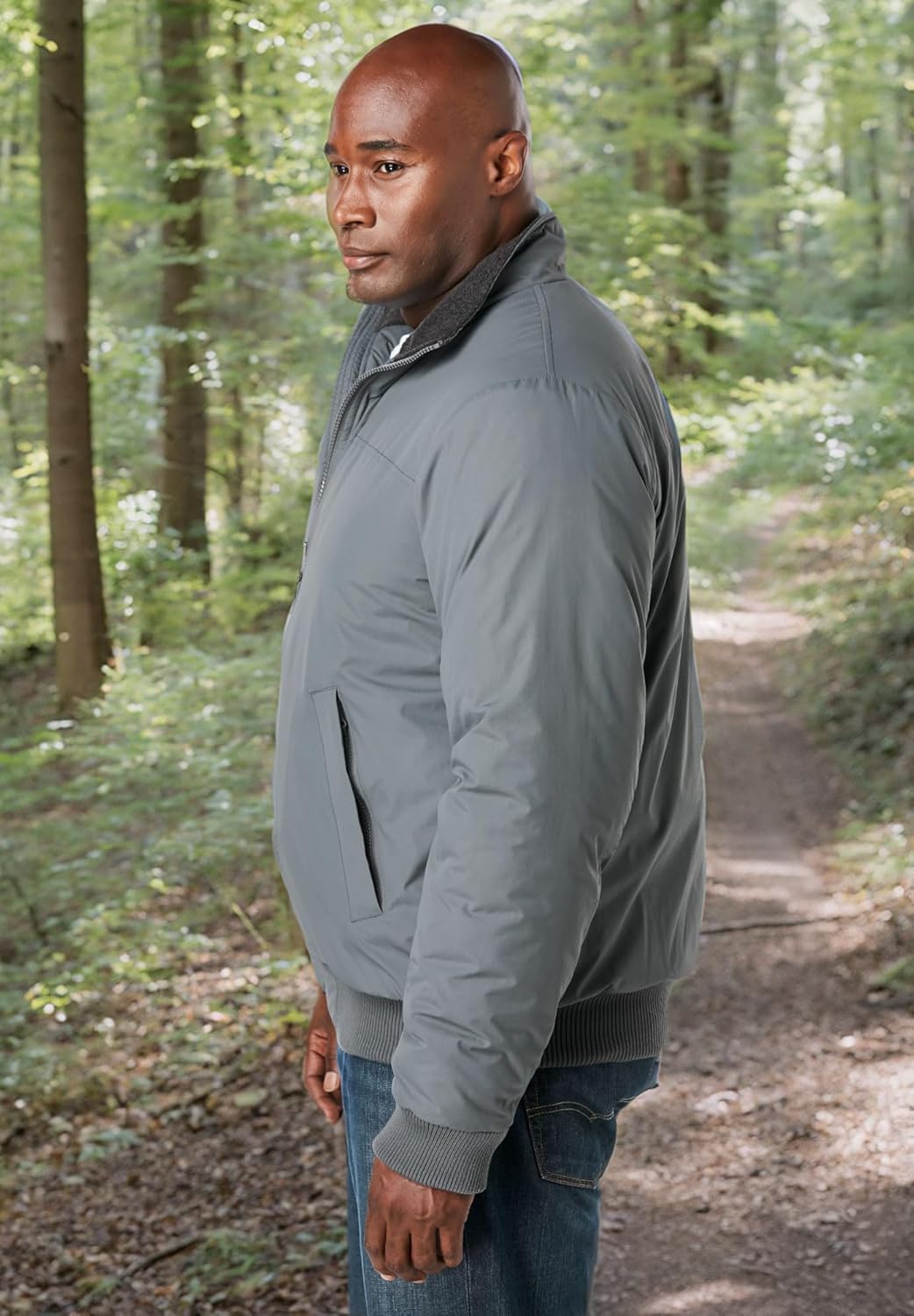 Protect yourself against the elements with this water-resistant jacket. This fleece-lined bomber will keep you warm, dry and looking your best. Relaxed fitbr>Fleece-linedbr>Zip frontbr>Rib-knit cuffs, waistbr>Two front pockets with zipper closure; inside welt pocketbr>Nylonbr>Dry clean onlybr>Imported Big length approx. 30”Tall length approx. 32”