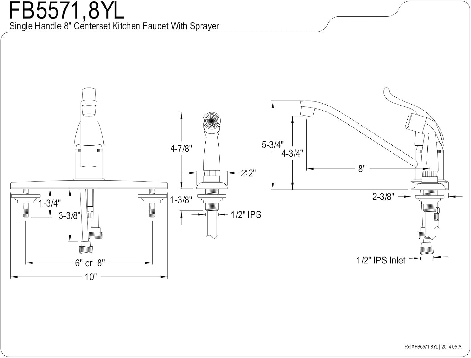 Includes black side sprayer. Contemporary style. Durable and reliable. Hybrid waterway construction meeting federal low-lead regulations. Durable washerless cartridge. Flow rate limited to Max 1.8 GPM/6.8 LPM At 60 PSI. Install on standard US plumbing connections. Made from brass and ABS. Made in Taiwan. Spout reach: 8 in.. Spout: 7.13 in. H. Aerator clearance: 4.75 in.. A great choice for the kitchen, the Yosemite Centerset Kitchen Faucet will look great in almost all design settings thanks to its versatile design.