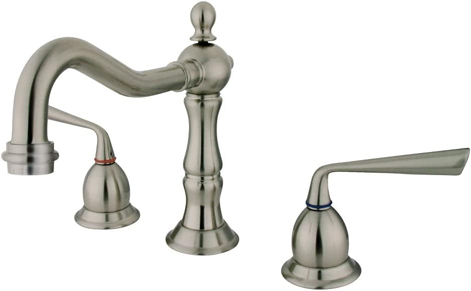 Product Description Includes all mounting hardware. Two handle deck mount. Three hole sink application. 0.5 in. IPS inlets. Ceramic disc valve. Integrated removable aerator. 7.05 in. spout reach from faucet body. Max 1.2 GPM/4.5 LPM water flow rate at 60 PSI. Classic style. Drip-free ceramic cartridge system. Designed for a lifetime of performance. Matching accessories available. Warranty: Ten years limited. Made from brass. Polished chrome finish. Made in Taiwan. From the Manufacturer Kingston Brass' Silver Sage Collection is designed with the senior customer in mind. Each piece is styled with a sleek and timeless design that will bring elegance to any bathroom decor. Adopted from the traditional styles of the early 20th century, the Silver Sage collection combines stylish curves and sleek elements to bring the contemporary style with the classic style. Made from high quality brass and coated in a variety of finishes, each bathroom faucet showcases glamor and durability. The handles are 4 inches long and ADA compliant. All Kingston Brass products go through rigorous quality inspections before being sent to the customer and come with a generous product warranty. Chrome finish is triple plated to resist tarnishing and corrosion.