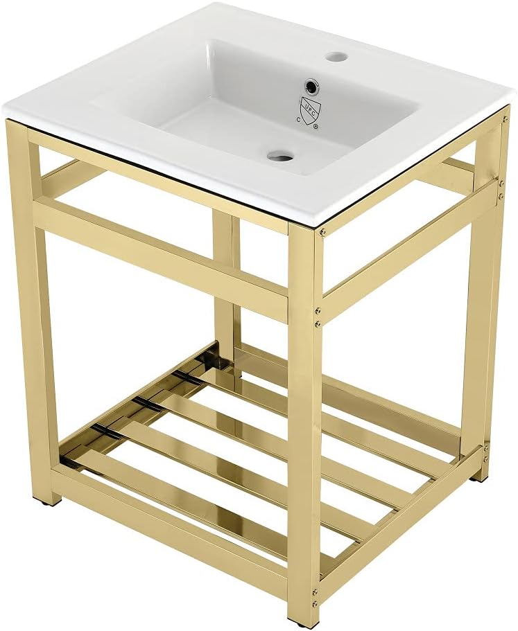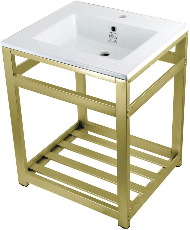 Exquisitely styled for your contemporary taste, this console sink will enhance your bathroom living space. With a beautiful ceramic counter top, this console sink set is a long lasting, durable, and elegant addition to your bathroom. The Kingston Brass 25-inch ceramic console sink (1-hole) features a wash basin and steel base that is available in a handful of finish options. Solid ceramic sinks and tops like the LBT-series top in this listing are finished with a glossy glaze on the top and sink basin interior, making for a pristine, stain-resistant surface and glistening finish that is easily maintained. The underside and basin exterior are unglazed/unfinished and coated with a matte white protective sealant that prevents moisture absorption and staining. Solid ceramic pieces cannot be glazed on all sides, because the nature of ceramic material requires a minimum surface area be left raw during the glaze firing process so the piece does not explode. Water supply kit, drain assembly, and the faucet are sold separately.