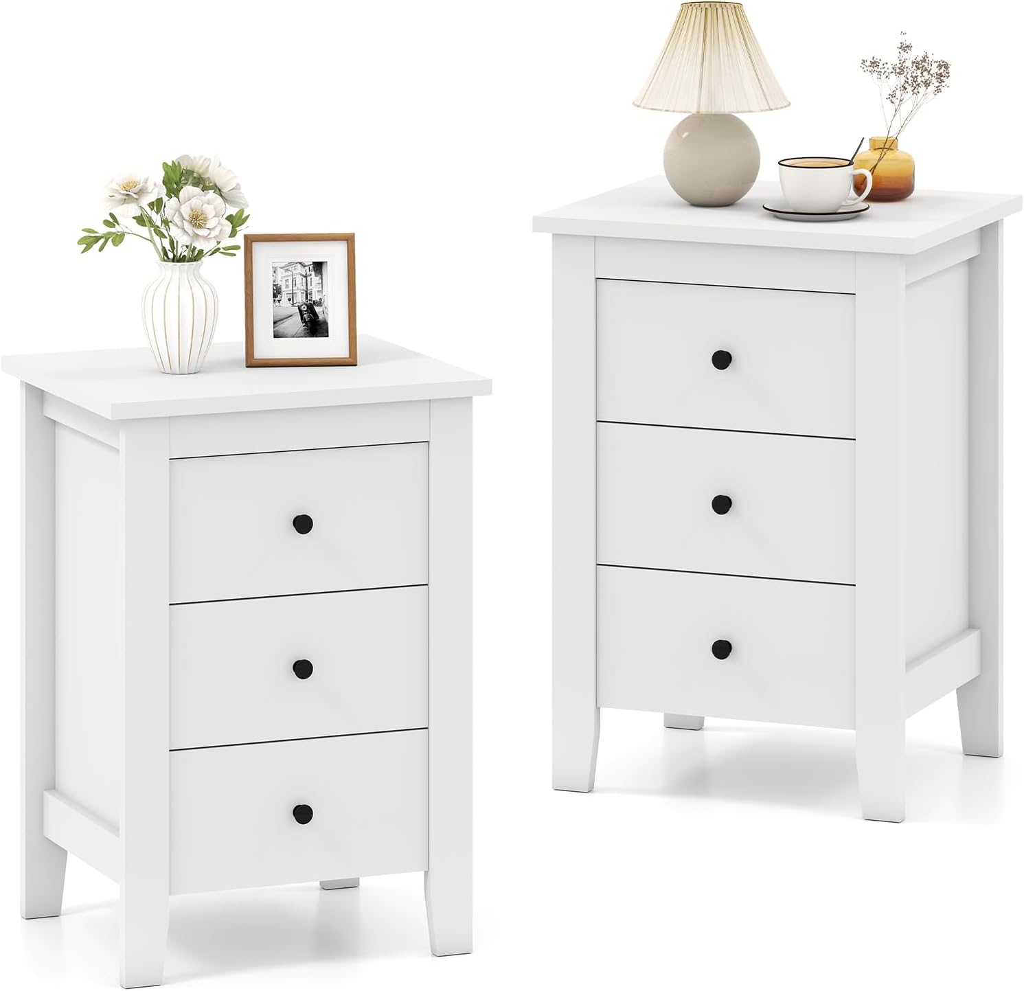 DescriptionEnhance your living space with this modern and functional white nightstand. This versatile side table features 2 drawers for storage, making it perfect for keeping your essentials close at hand. The drawers slide smoothly, and the handles are easy to grip. The tabletop is ideal for your lamp, books, and other items. Crafted with sturdy support legs, this sofa end table ensures stability and durability for long-term use. Its compact size makes it an ideal piece for multiple settings. This white sofa end table features a modern aesthetic with clean lines and a refined texture, making it a stylish addition to any bedroom or living room.Feature2 spacious drawers provide ample storage for bedside essentialsGenerous tabletop surface for placing items within reachRobust support legs offer reliable stability and durabilityRound metal knob and metal slide rails for easy opening and closingIdeal for bedroom, living room, or sofa couchWorks well as a bedside table, an end table, or as an accent tableSleek modern design enhances any room decorSimple to put together with clear instructions includedEasy-to-clean surface makes cleaning a breezeSpecificationColor: White/BlackMaterial: MDFProduct Size: 20" x 14.5" x 22" (L x W x H)Drawer Size: 13.5" x 11.5" x 5" (W x D x H)Weight Capacity of Tabletop: 44 lbsWeight Capacity of Each Drawer: 11 lbsNet Weight: 25 lbs Package Includes:1 x Nightstand1 x Instruction