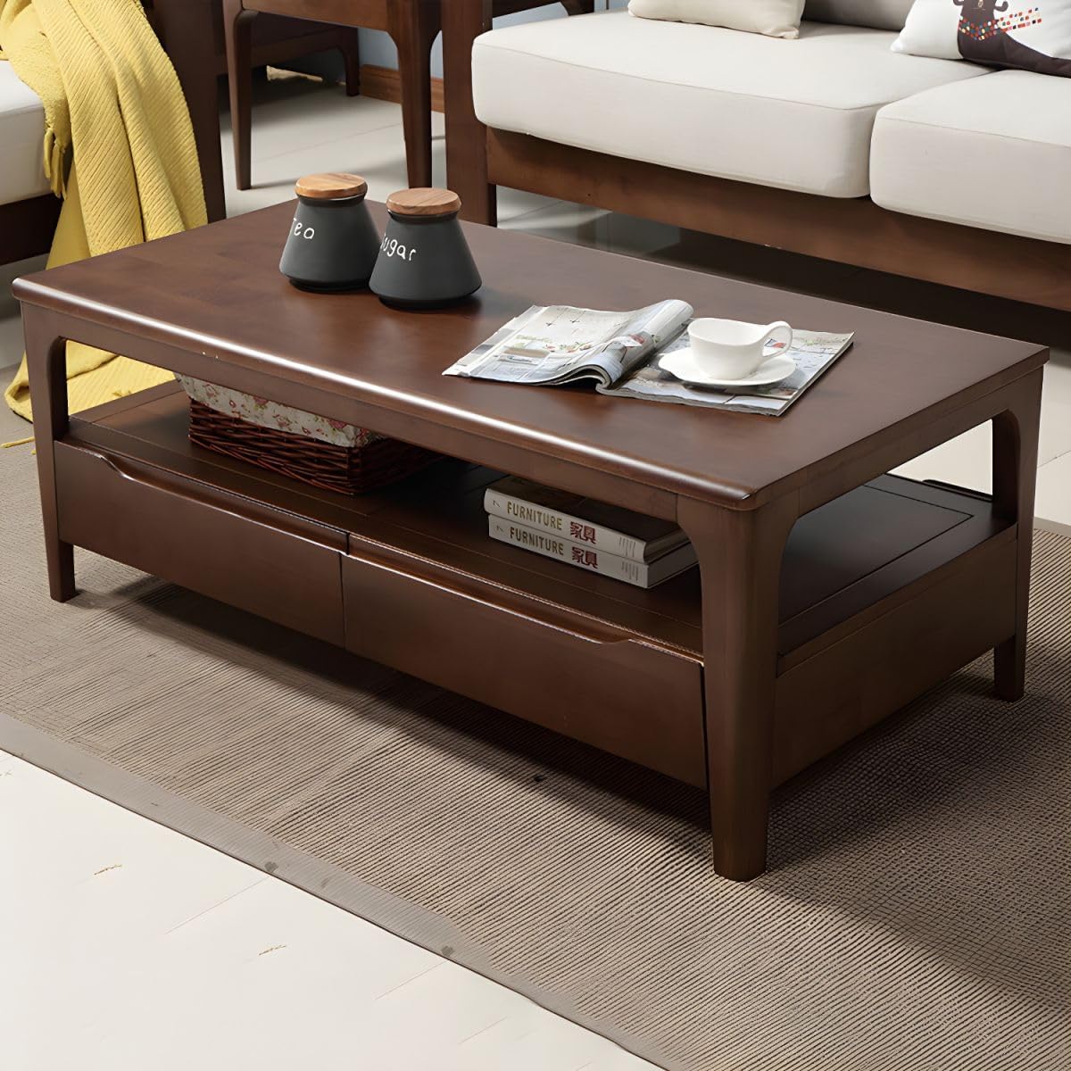 KWOKING Modern Wooden 4 Legs Coffee Table with Storage Rectangular Cocktail Table in Oak/Walnut, rich in colors and sizes are suitable for both home and office.Product Details:Table Top Color: Walnut ,NaturalSize: 47"L x 24"W x 18"H ,24"L x 24"W x 18"H ,51"L x 28"W x 18"H ,39.5"L x 19.5"W x 18"HTable Top Material: WoodTable Base Material: WoodTable Base Color: Brown ,NaturalBase Wood Species: Walnut ,RubberwoodTop Wood Species: Walnut ,RubberwoodSpecifications: Set Type: Single TableNumber of Table Included: 1Style: ModernTop Shape: RectangularTable Base Type:Four LegsDimensions: Overall Table Length - End to End: 47" (120 cm) ,23.5" (60 cm) ,51" (130 cm) ,39" (100 cm)Overall Table Width - Side to Side: 23.5" (60 cm) ,27.5" (70 cm) ,19.5" (50 cm)Overall Table Height - Top to Bottom: 18" (45 cm)Overall Weight: 44.0 lbs (20 kg) ,33.0 lbs (15 kg) ,48.4 lbs (22 kg) ,39.6 lbs (18 kg)Purchase Notes:The coffee table requires assembly. We provide detailed, step-by-step instructions for easy assembly. Usually, complete within 20 minutes.The coffee table is rich in colors, and there will be some differences due to the display, light, and other reasons. Please refer to the actual product.We are a brand company with a sense of responsibility and dreams, we attach great importance to customers' feelings and provide perfect after-sales service, Therefore, If you are not satisfied with product, we'll try our best to provide you with best service, please feel free to contact-us.