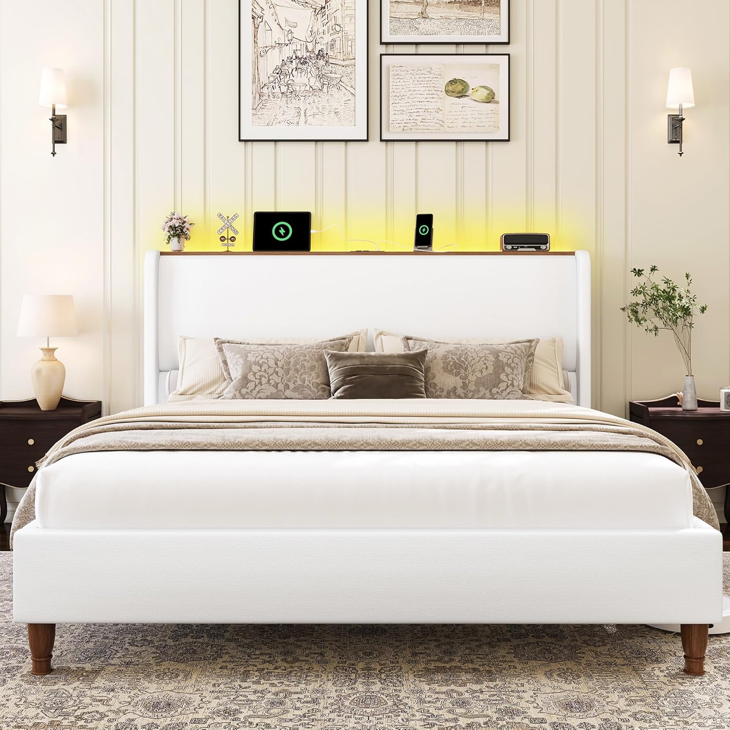 | Other Special Features of the Product | Charging Station, LED Lighting, Premium Linen Fabric, USB Port, Wingback Design |