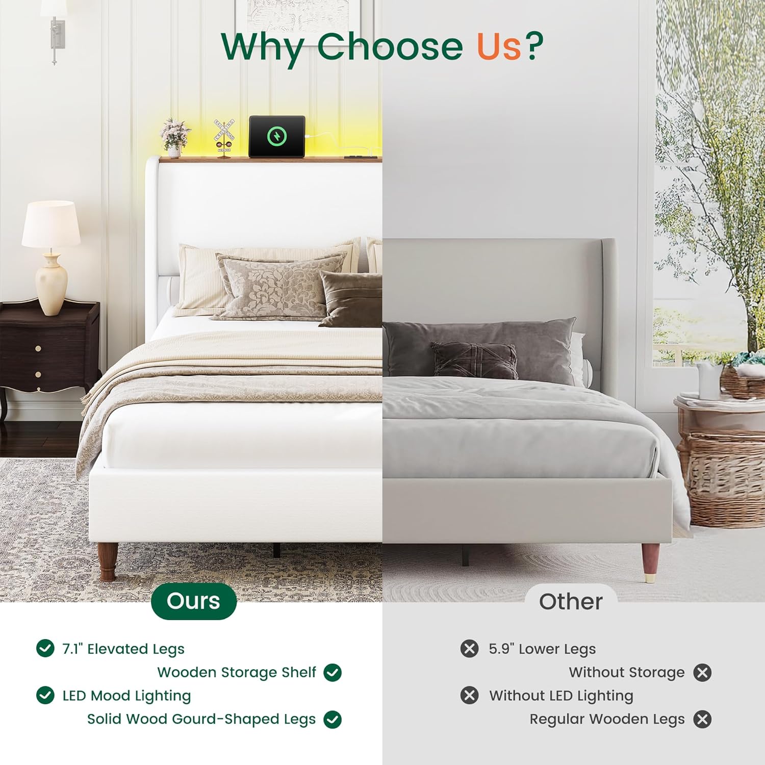 | Included Components | Charging Station, Headboard, LED Lights, Slat, Storage Shelf |