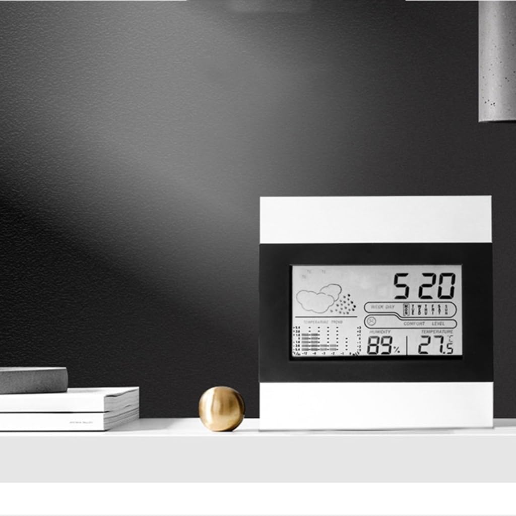 Search for humidity monitoring and measure the air conditioning in real time.With a bracket, it can be placed on the table.Also display the temperature, humidity, and time.Low power consumption, high stability and accuracy.Thermometer makes your life easier and suitable for many places.Material: plasticDimensions: 13*2.2cmPackage: 1 * thermometerAlarm function