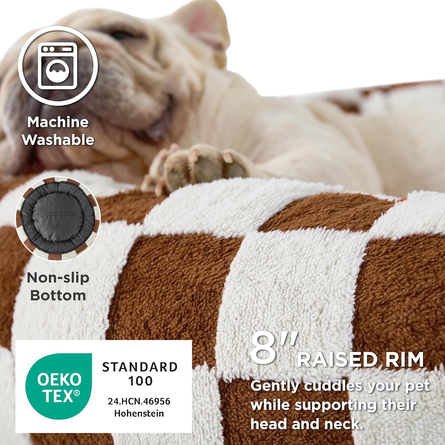Lesure Donut Dog Bed Medium Size Brown with 3 Steps Dog Stairs Beige