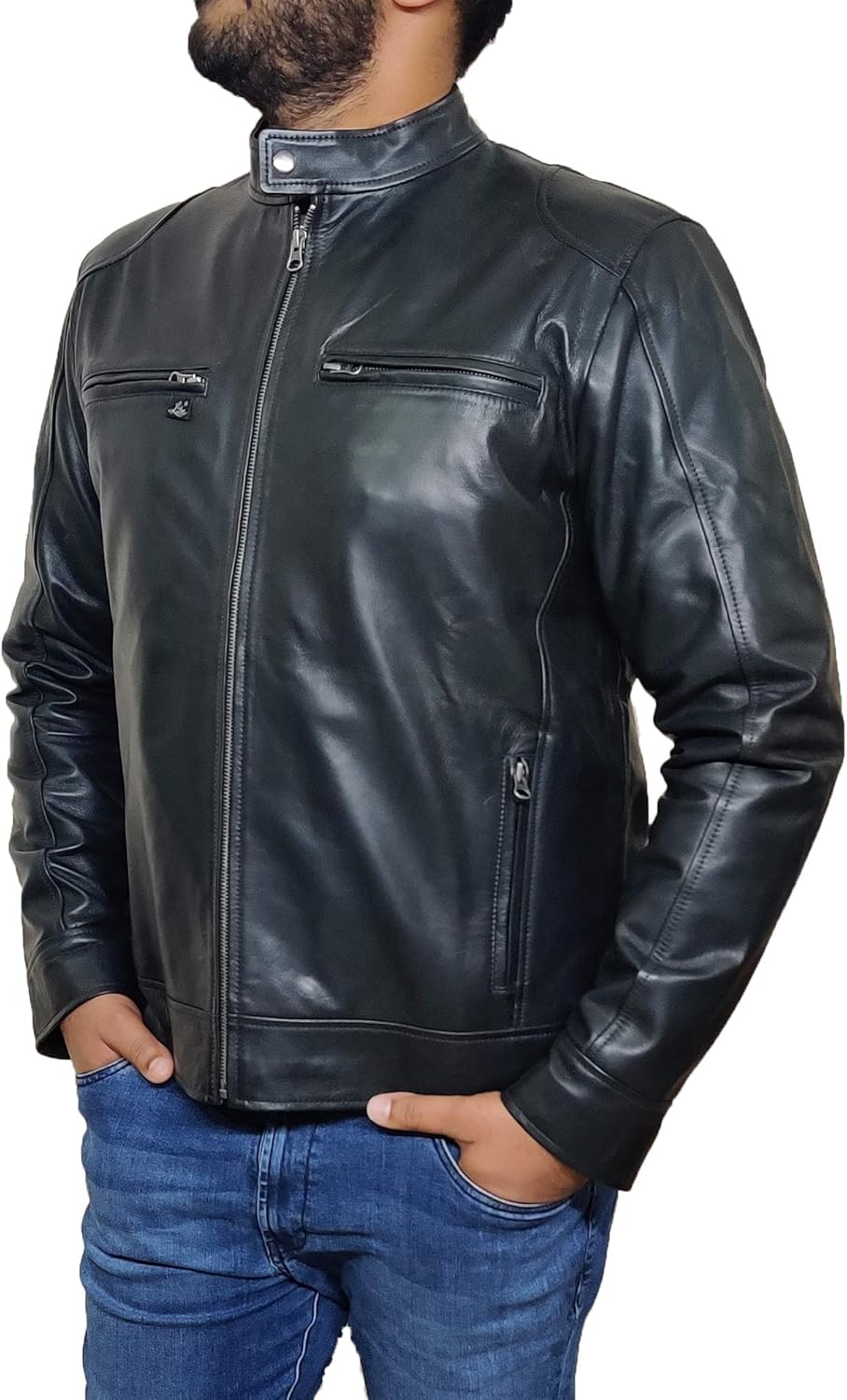 FASIGO️The Brand Which Provide Quality And Style This leather jacket will give you an elegant style this season. This is a versatile item made of genuine leather that will keep you warm and comfortable. This jacket is made to last a lifetime and will make you look great no matter, what you wear? For millennia, mankind has utilized leather items as a means of luxury, comfort, fashion, and warmth. -Real leather ages wonderfully over time. It takes on the personality of the wearer. -Because natural leather is breathable, you will not feel sticky and smothered as you would with PVC artificial imitation.COSTUME MADE JACKETSHOW TO MEASURE SIZE BELOW ARE DETAILShoulderMeasure from the tip of one shoulder, across your back to the tip of your other shoulder.ChestMeasure the circumference around the fullest area of chest.Natural WaistMeasure the circumference around the narrowest area of waist.HipsMeasure around the fullest part of your body above the top of your legs.Sleeves OutseamMeasure from your shoulder seam with your arm slightly bent, to the tip of your wrist.WHY WE ARE DIFFERENCE FROM OTHERFinest Raw Materials It all begins with the finest raw materials only the best materials are used. Our jackets are all constructed of full grain natural leather, YKK zippers, and polyester lining.Exquisite CraftsmanshipOur products are handcrafted one at a time by our craftsmen, resulting in higher quality stitching that you will notice.Fair Pricing - Direct to YouWith our direct-to-consumer approach, our products come at ¼ the price of what luxury brands would sell them We keep our costs low by eliminating intermediaries.SHIPPINGOnce we ship the order and provide tracking number it is the responsibility of the customer to follow up.