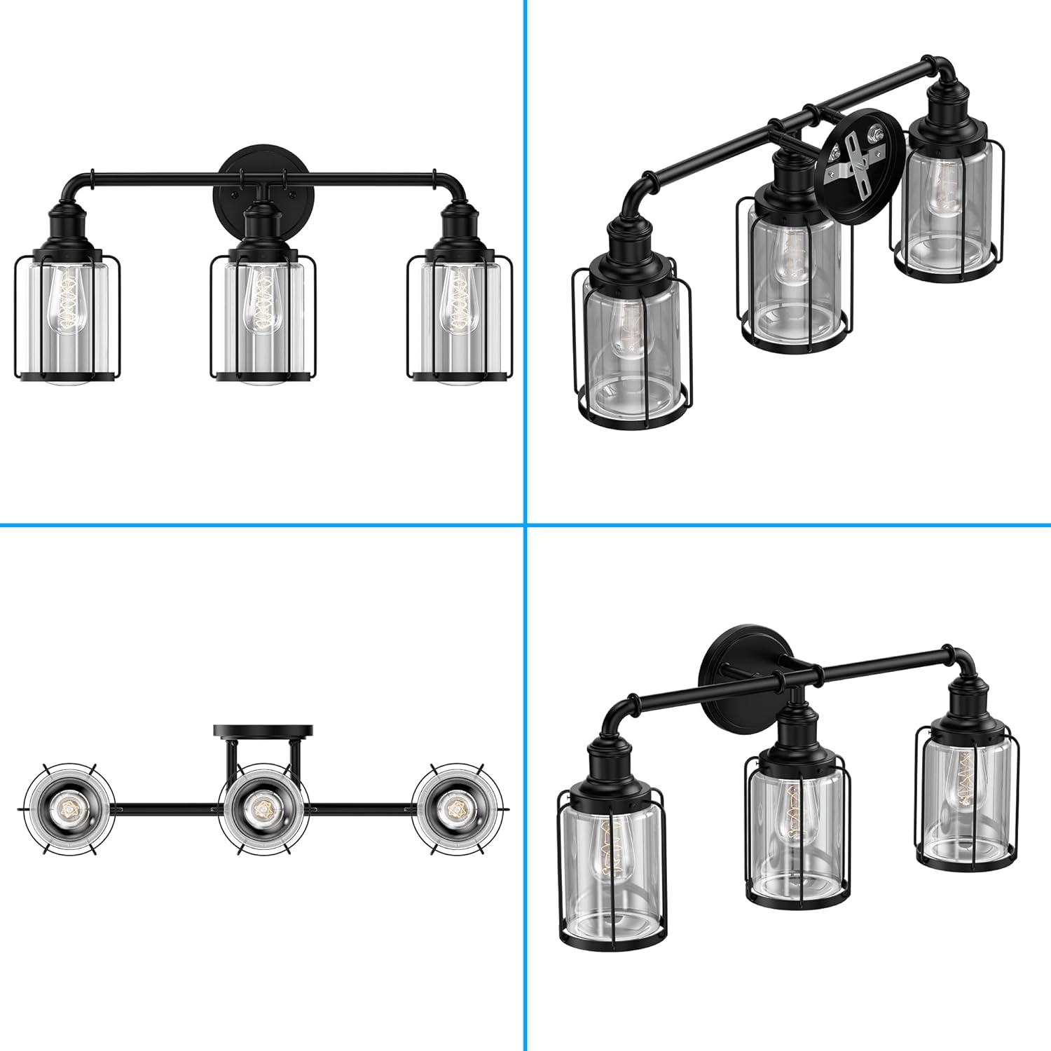 | Other Special Features of the Product | Damp Location Rated, E26 Base (Bulb Not Included), Ideal Bathroom Mirror Companion, Instant On, Robust Qulaity, UL Listed, Steel and Glass, Matte Black Finish |