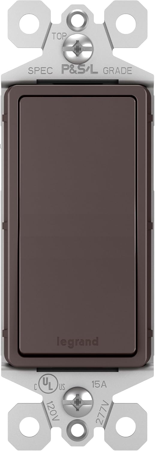 This bundle includes a Legrand 450W dimmer light switch and a 15A rocker wall switch that complement each other perfectly to control lighting in your home. The 450W dimmer paddle switch allows you to easily turn lights on and off and dim them using the convenient sliding control. It works with a wide variety of bulbs including LED, CFL, and incandescent. The dimmer is rated for 450W LED, 700W incandescent, or 120VAC fixtures. It can operate a light from one location or pair with a second switch. The switch also features a handy LED locator glow light to find it in the dark. Pair the dimmer with the sleek, dark bronze 15A rocker wall switch which provides simple on/off operation for controlling plugs, lamps, and hardwired fixtures. The robust switch is made from high impact resistant material and is thoroughly tested. It accepts 14 AWG solid copper wire and has side wire terminal screws for easy installation. With their matching dark bronze aesthetic and quality construction, these switches complement each other beautifully to provide control and style. The dimmer brings variable light levels and the convenience of a locator light while the rocker switch offers dependable on/off operation.