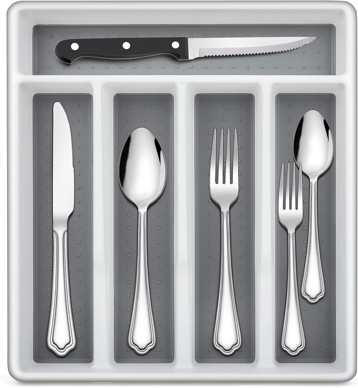 | Included Components | Dinner Knife x 12, Dinner Fork x 12, Dessert Fork x 12, Dinner Spoon x 12, Teaspoon x 12, Steak Knife x 12, Silverware Organizer x 1 |