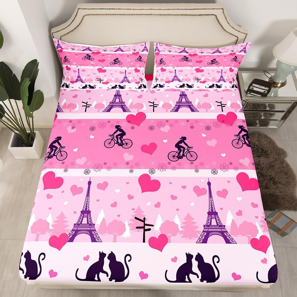 Our fashion Designs Match Any Decor,Modern Fitted Sheet Set Bedding Set,Simply Decorating Your Rooms Any Time You Want,Bringing You Fresh Feel for Year Round Use.Made From Polyester Microfiber Size Information Twin Size Include 2 Pieces Fitted Sheet Set: 1 Fitted Sheet 39"Wx75"Lx16"H(99x190x41cm) and 1 Pillowcase 20"x30"(51x75cm). Full Size Include 3 Pieces Fitted Sheet Set: 1 Fitted Sheet 54"Wx75"Lx16"H(137x191x41cm) and 2 Pillowcase 20"x30"(51x75cm). Queen Size Include 3 Pieces Fitted Sheet Set: 1 Fitted Sheet 60"Wx80"Lx16"H(152x203x41cm) and 2 Pillowcase 20"x30"(51x75cm). Personalize Your Bedroom Beautiful Design and Colorful Print Bed Set,Makes Your Bedroom Unique and Brings You a Wonderful Dream. Washing Instructions Machine Wash Separately In Cold Water,Hang Dry,Do Not Bleach. The Soft Fitted Sheet Bedding Sets Designed for Children,Adult,Men,Women,Teens.This Bed Sheets Is Also Suitable for Full Seasons,Spring,Summer,Autumn and Winter. We Are Dedicated to give You An Excellent Experience, Satisfaction Service from The Moment You Place Your Order Until You Sleep on Your New Bedding The First Time.