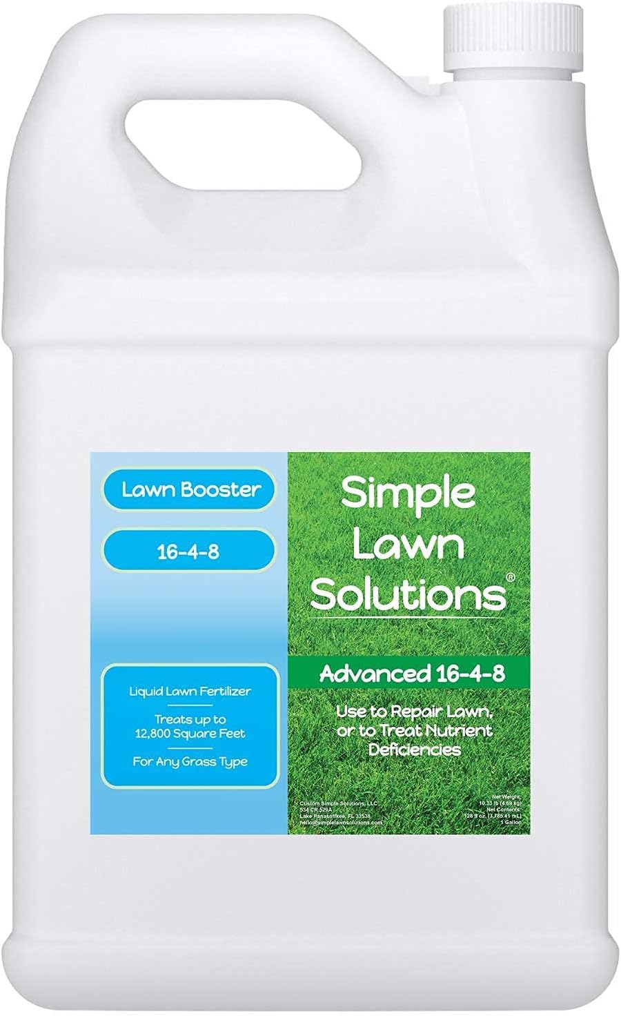 16-4-8 Liquid Lawn Food Fertilizer and Liquid Soil Loosener Bundle. Get the best lawn on the block with this duo. 16-4-8 Lawn Food contains the essential macronutrients to help get your lawn on track this season, no matter what grass type you have! This lawn food is designed to give your turf green & growth while providing just enough energy for root support, vigor, and strength. If you want a balanced Lawn Food to maintain a healthy lawn this Lawn Food is perfect for you! 16-4-8 is made from high quality feed grade ingredients. Our decades of research has resulted in formulas that are expertly manufactured with our proprietary manufacturing method, unlike any other product on the market. Nitrogen 16% is a major component of chlorophyll where plants get their green coloring. Nitrogen encourages vigorous growth for the development of a dense attractive lawn. Phosphorus 4% encourages root development, and enhances vigorous plant development in early stages. Potassium 8% enhances plant tolerance to extreme temperatures and drought, while also playing an essential role in the transfer of nutrients and regulation of water and nutrients. Seaweed & Fish Emulsion provides rich, organic matter to soil for a more effective Lawn Food and optimum nutrient uptake. Simple Lawn Solutions: Liquid Soil Loosener is a conditioning soil treatment that helps vertical movement of moisture. Liquid Soil Loosener can be used alone or with mechanical or core aeration, aerating and aerate tools. Soften your soil with this advanced, easy to work with treatment. Use 4 weeks before planting new seeds. Great for any grass type and soil type that has trouble with compaction. Use alongside any fertilizer program.