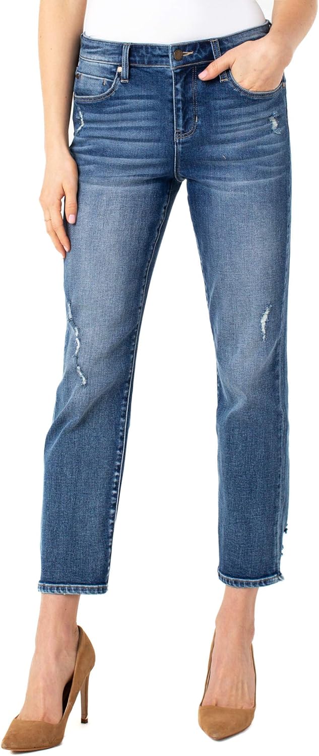 Designed with vintage-like characteristics to give a rigid look while keeping comfort in mind. This versatile jean comes in a straight leg and cropped at 27 inches with a tasteful destruction finish at the back hem. Perfect for your favorite tennis shoes or heels and great for petite women as well! Pair it with your favorite tee or dress it up with a blouse or button-up. This modern eco jean was designed using new laser techniques and processes that gives the "Liverpool Look" and uses a fraction of our natural resources.