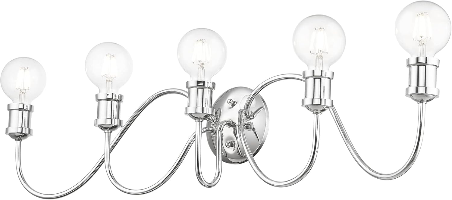 Clean lines and exposed bulb sockets make the Lansdale collection perfect for your mid-mod or transitional bath. The eclectic look is perfect for spaces wanting an urban, minimalistic or industrial touch. With superb craftsmanship and affordable price, this polished chrome five-light vanity sconce is sure to tastefully indulge your extravagant side.