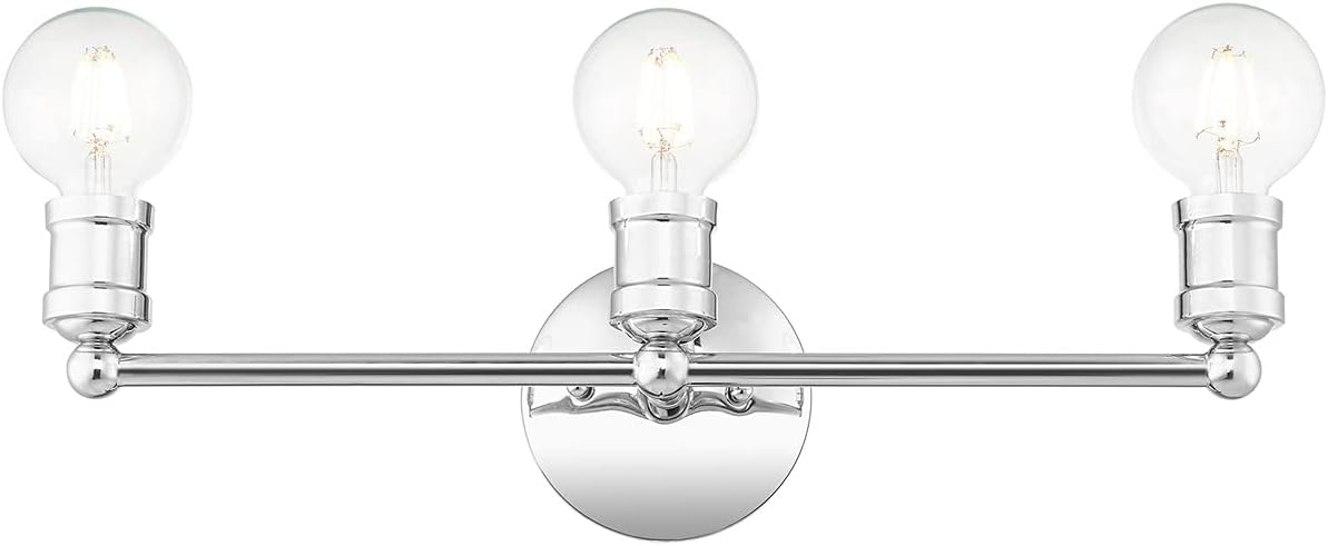 Clean lines and exposed bulb sockets make the Lansdale collection perfect for your mid-mod or transitional bath. The eclectic look is perfect for spaces wanting an urban, minimalistic or industrial touch. With superb craftsmanship and affordable price, this polished chrome three-light vanity sconce is sure to tastefully indulge your extravagant side.