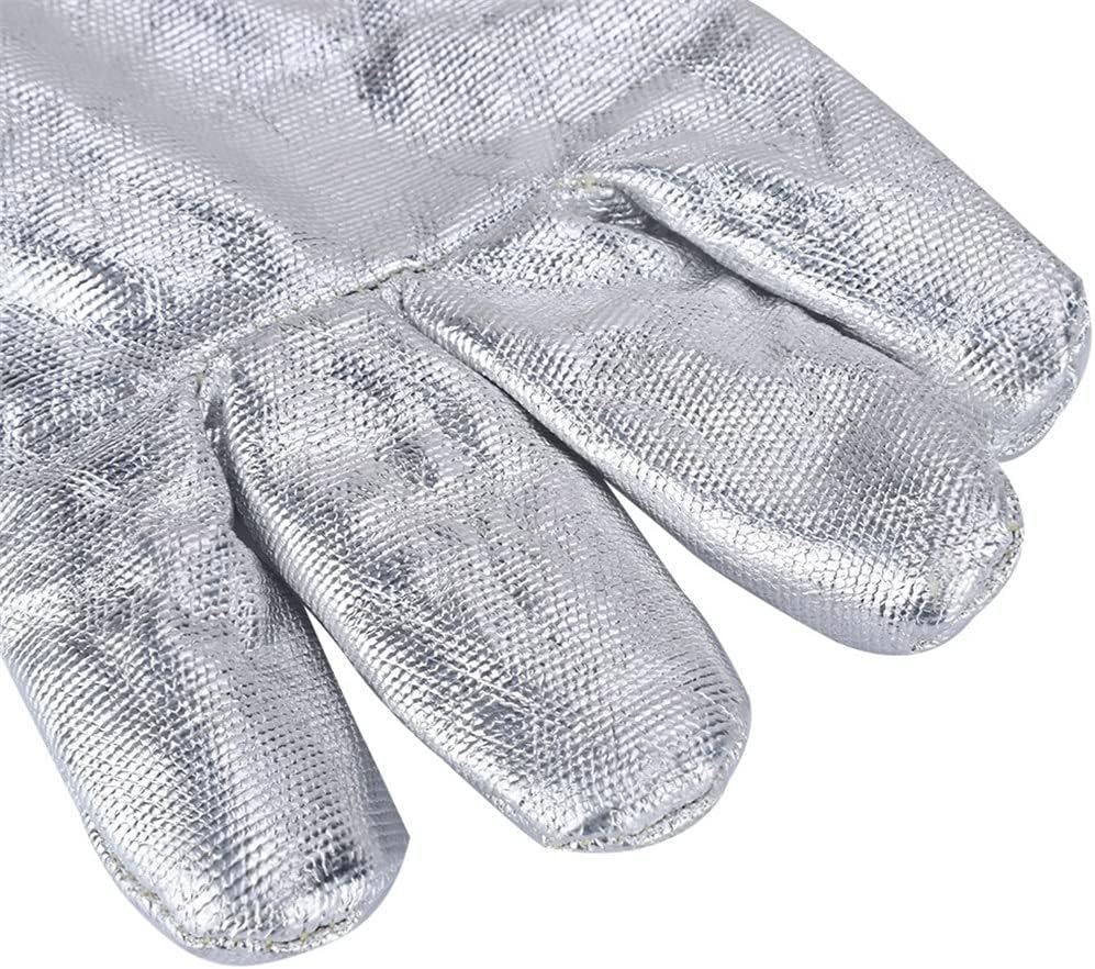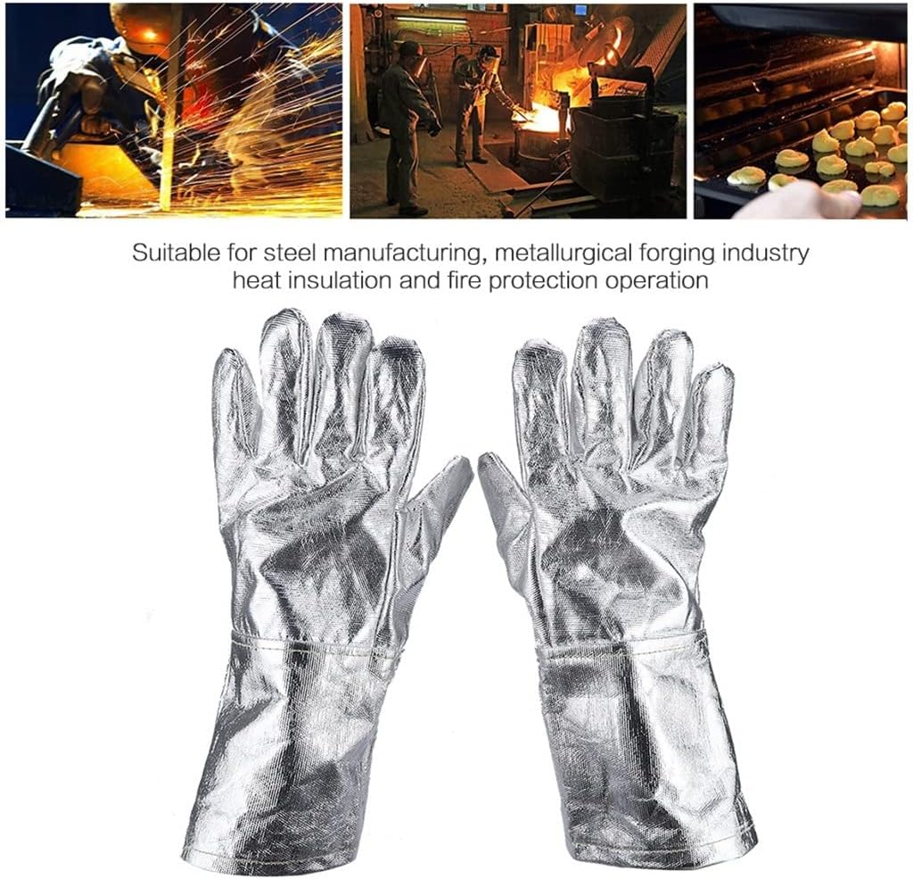 It can withstand high temperature of 500 degrees at most (3-10secs).Radiation-proof performance, can reflect 95% of the heatSuitable for steel manufacturing, metallurgical forging industry, heat insulation and fire protection Five finger design, more flexible to wear.Long sleeve design for more comprehensive protectionSpecification:Color: silverMaterial: aluminum foilTotal length: Approx. 38cm/15inHand part width: 14cm/5.5inWeight: Approx. 217gPackage Included:A Pair Gloves