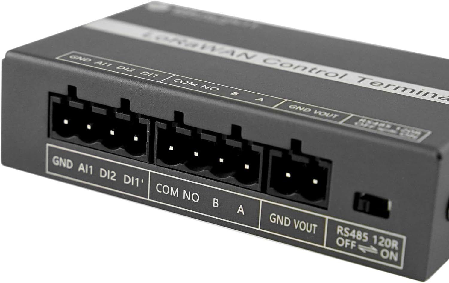 LoRaWAN Control Terminal (US 915MHz, 4km Range, RS485) IntroductionThe LoRaWAN Control Terminal (915MHz) functions as a comprehensive Industrial IoT (IIoT) node designed to bridge the gap between physical field devices and remote cloud platforms. Operating on the 915MHz band, this wireless controller simplifies complex telemetry projects by integrating data acquisition, logic processing, and device actuation into a single, DIN-rail mountable unit. It is specifically engineered for scenarios such as smart agriculture, building automation, and industrial monitoring, where reliable long-range communication and autonomous offline operation are critical. By combining versatile interfaces with standard LoRaWAN connectivity, this Remote Terminal Unit (RTU) offers a streamlined, cost-effective alternative to complex PLC and radio setups, allowing for rapid deployment in environments requiring both sensing and control. Specification Basic ParametersInput Voltage: 12-24V DCOperating temperature: -10~60℃Product Dimensions: 89x53x24mm (excluding terminals and mounting parts)Communication InterfaceRS485 x1: Modbus RTU ProtocolAI x1: 0-10V Analog InputDI x2: Optocoupler isolated input, 5-24VRelay output (normally open) x1: Touchpoint switching parameters 24VDC 3A/220VAC 3ADC Wireless Parameters Operating frequency band: 902~928MhzTransmit Power: 22dBmReceive Sensitivity: -137dBm/125kHz SF=12Working Mode: OTAA/ABP Class A/C Shipping listLoRaWAN Control Terminal (915MHz) x1 Rubber Antenna x1 Mounting Lugs x2 DIN Rail Clips x2 M4*6 Mounting Screws x4 Plug-in Terminal - 4P x2 Plug-in Terminal - 2P x2