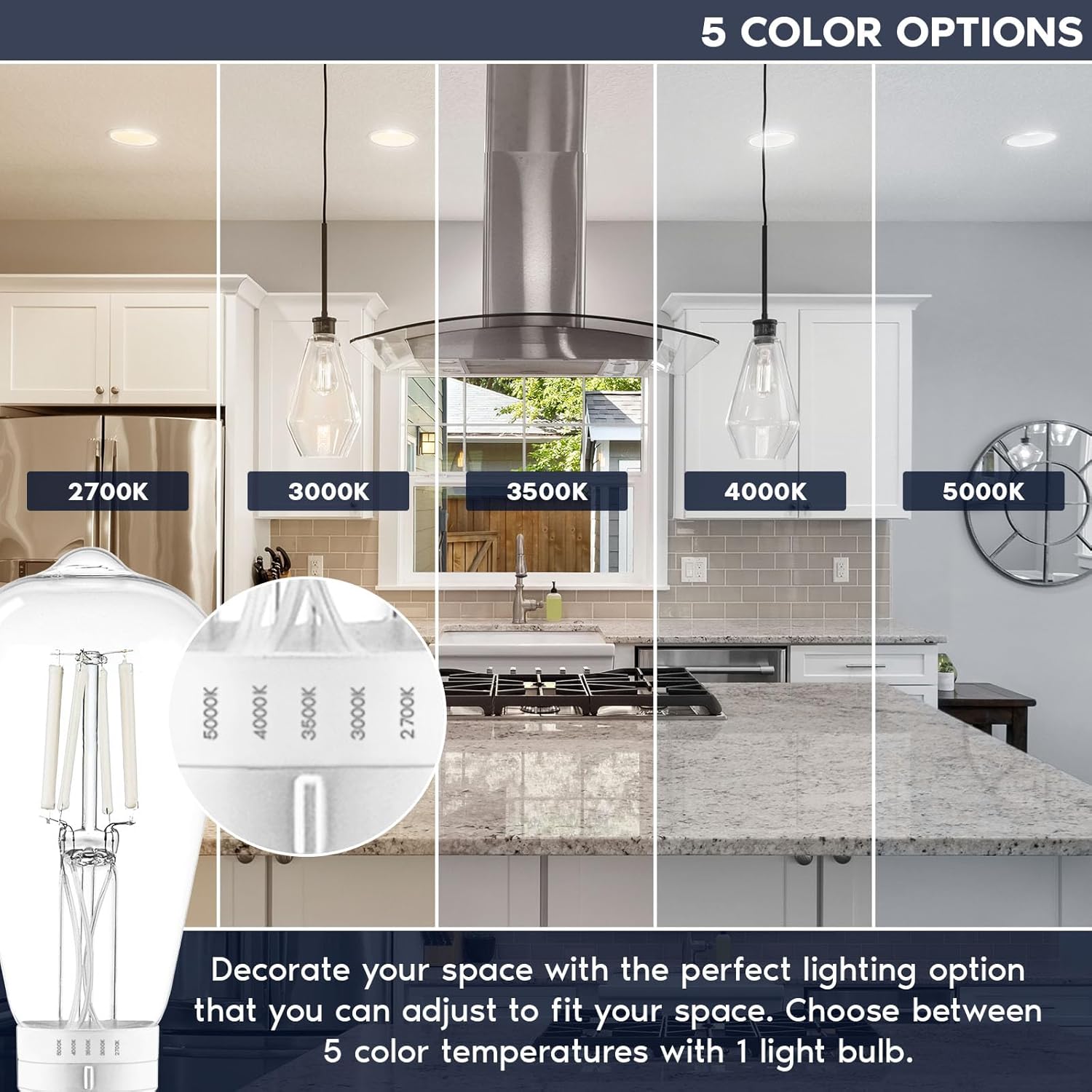 | Additional Features | 300° Beam Angle, 5CCT (2700K/3000K/3500K/4000K/5000K), Damp Rated, Dimmable, Edison Bulb |