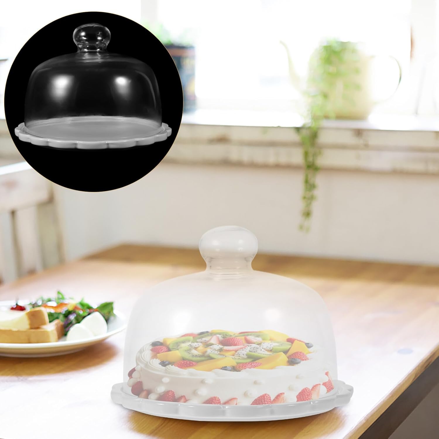 Package Include 1x Glass Cover 1 x Round Tray Features -Product Info:Cake cover -Color: White. -Material: Ceramic, Glass. -Size: About 20.50X20.50X15.50cm/ 8.06X8.06X6.09in. - Can be used as a good housewarming to your close friends or family glass dome cover. - It can be used not only at home, but also in cake shops glass dome lid. - It can keep your food clean and , which is very practical dessert dome. - Its materials are glass and ceramic materials, very strong and wear-resistant, long-term use. - Can be used to cover your cakes, desserts, snacks and some other foods cake dome.Goods Informationdessert dome Made of glass and ceramic materials, and safe.dessert cloche The appearance is simple, the design is and practical, and sturdy.cake covers This tray can be given to your friends as a housewarming .cake cover This kind of cover can keep the food clean and.household dessert cover This cover is used to your food and