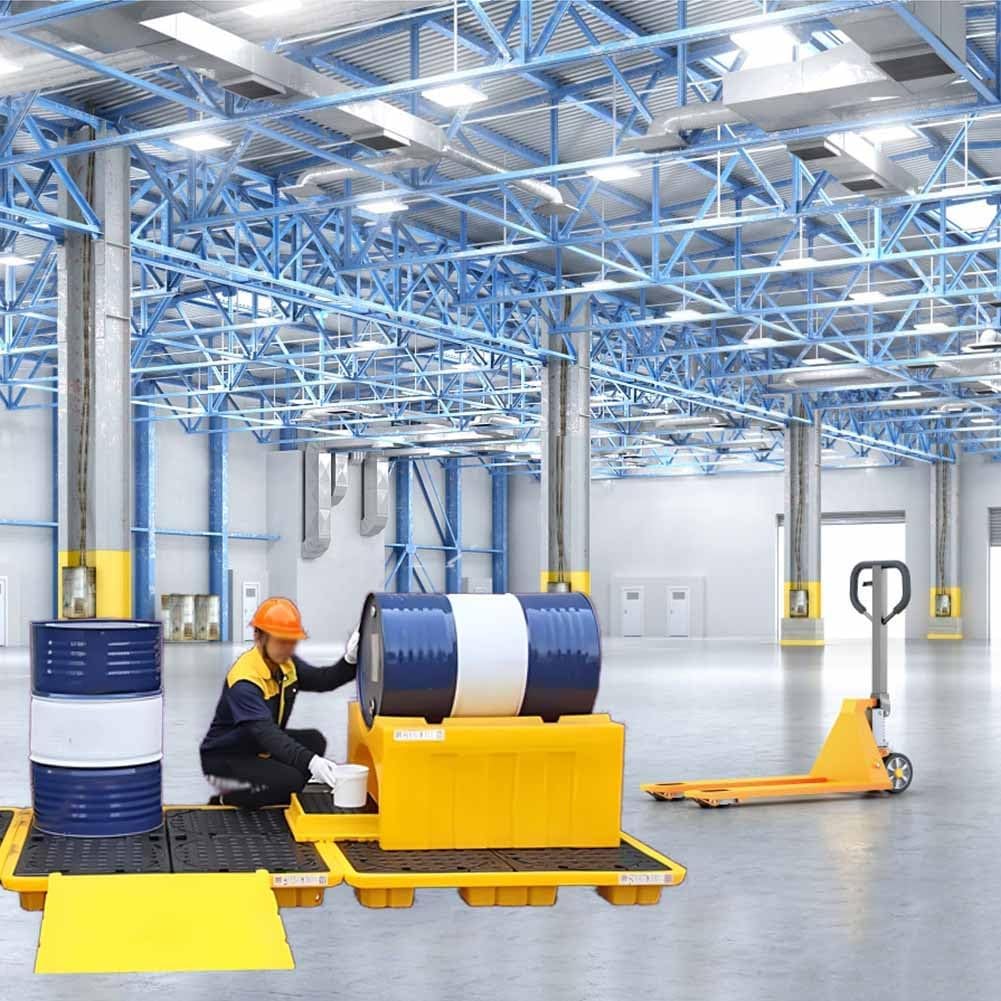 PRODUCT FEATURES:- The top grates of this spill platform are removable for easy cleaning, while forklift pockets make relocation easy- This spill containment platform provides ample space and overflow capacity, reducing the spills and keeping the ground clean.PRODUCT PARAMETERS:Product name: Low Profile Spill Containment PalletMaterial: Polyethylene (HDPE)Color: Yellow + BlackProduct size (L x W x H): 67x67x15cm , 72x72x16cm , 128x68x17cmFeature: Thickened design, strong load-bearing, durable, wear-resistant and fall-resistantApplicable scene: Warehouse, workshop, maintenance, supermarket, industrial, commercial, factoryEasy to clean: Rinse with clean waterPACKAGE CONTENT:1PCS x Leak-Proof TrayNote: Please choose the size before buying.